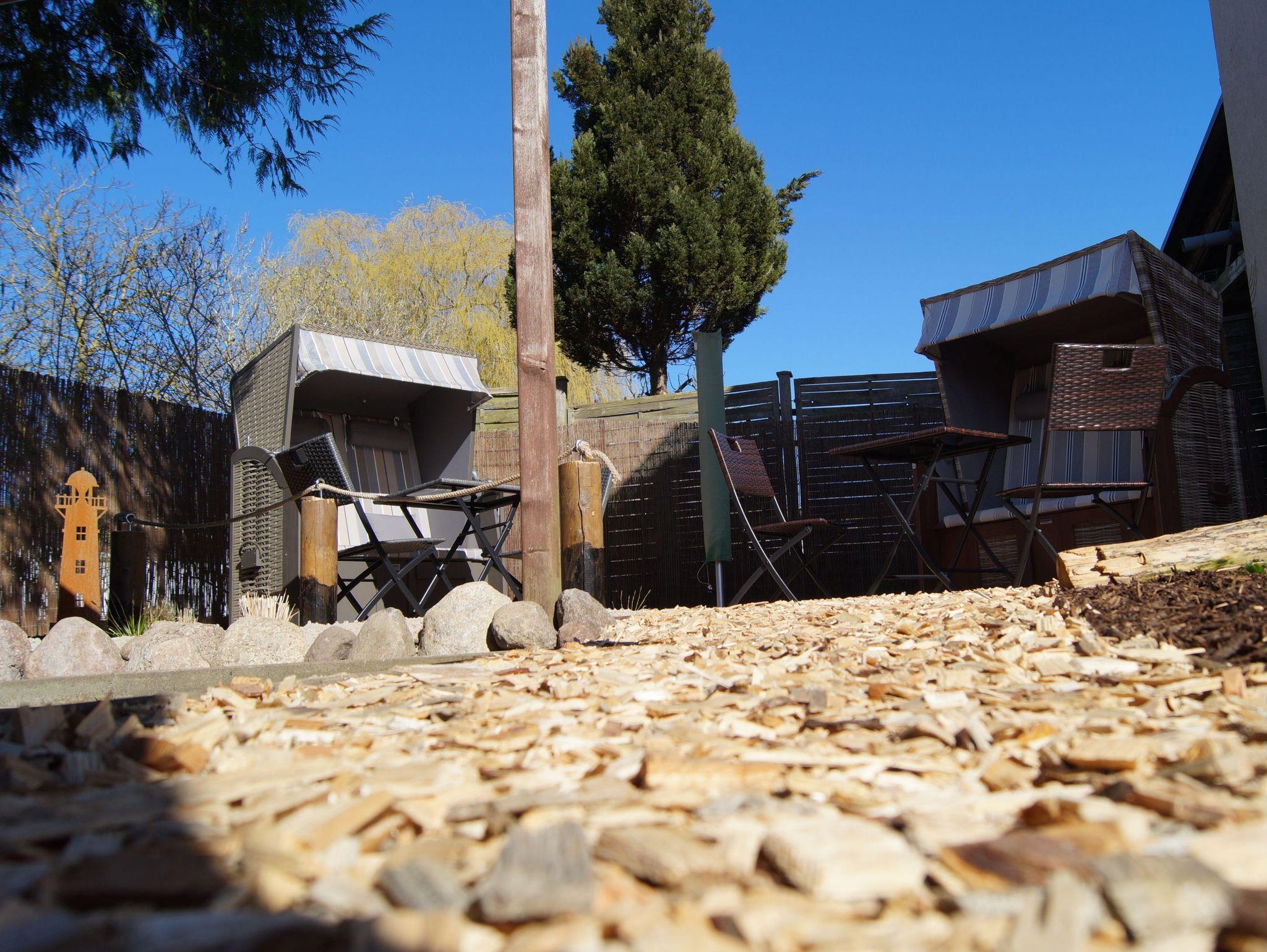 In der wärmeren Jahreszeit steht unseren Gästen noch ein ca. 60m² großer Urlaubergarten zur Verfügung. Hier findet sich zudem eine Unterstellmöglichkeit für Fahrräder mit der Möglichkeit ggf. mitgebrachte E-Bikes aufzuladen.