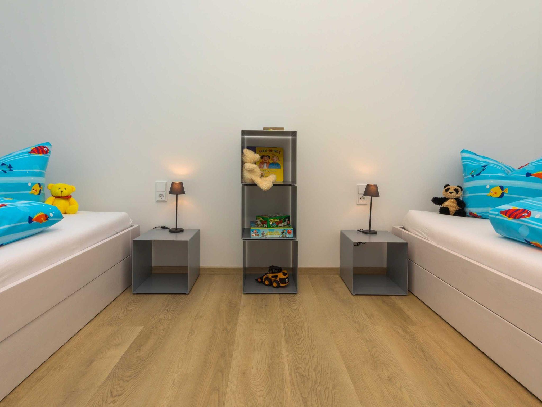 • 1 Schlafzimmer mit zwei Einzelbetten (jeweils 200cm x 100cm)