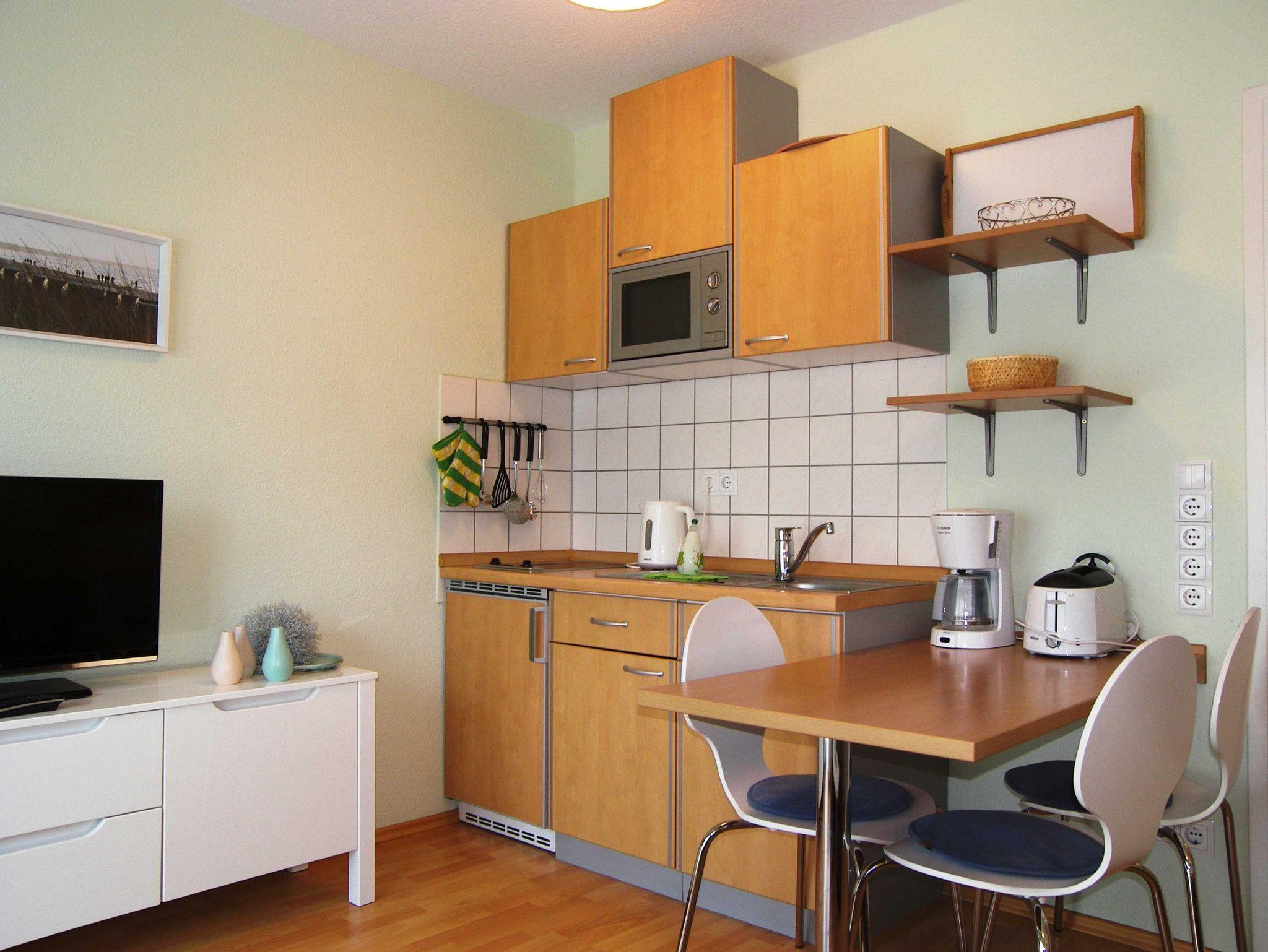 Die Nichtraucher-Ferienwohnung ist für 2 Erwachsene und 1 Kind komfortabel ausgestattet und verfügt über ein Schlafzimmer mit Doppelbett und eine offene Wohnküche mit Schlafcouch. Für Ihre ganz Kleinen haben wir zusätzlich ein Reisebett bereitgestellt. Im Wohn- und Esszimmer befindet sich ein Flat-TV und eine kleine HiFi-Anlage. Die Pantry-Küche ist mit 2-Kochstellen-Ceranfeld, Kühlschrank, Mikrowelle, Kaffeemaschine, Wasserkocher und Toaster ausgestattet. Im Duschbad mit WC befindet sich ein Fön. Die nach Süden gelegene Terrasse mit Sitzmöbeln und Grill lädt zum Entspannen ein. Direkt vor dem separaten Eingang der Ferienwohnung befindet sich ein Parkplatz für Sie. Im Mietpreis enthalten sind: Wasser, Strom, Heizkosten und der Parkplatz. Die Erstausstattung Bettwäsche und Handtücher sind nicht im Gesamtpreis enthalten. Bei Bedarf können diese gegen Gebühr zugebucht werden. Die ortsübliche Kurtaxe ist vor Ort zu zahlen.