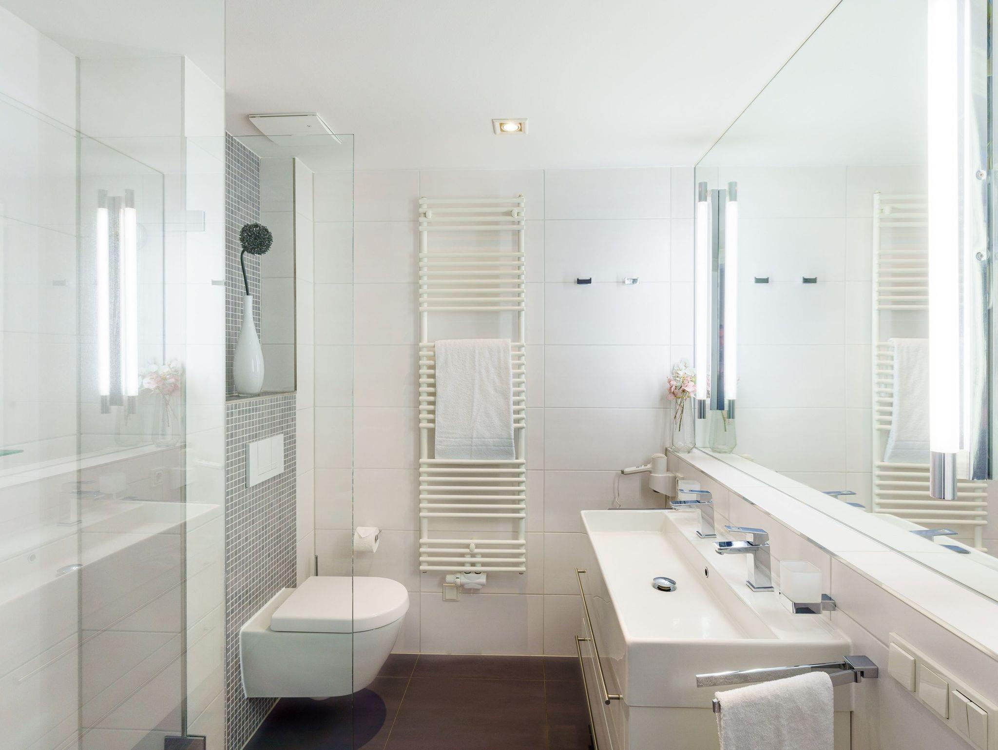 Damit Sie Ihre wohlverdiente Urlaubszeit bereits am Anreisetag in vollen Zügen genießen können haben wir das Bett für Sie und das für Ihre lieben Mitreisenden bereits bezogen und ein Duschtuch sowie ein kleines Handtuch bereitgelegt. Im Badezimmer mit WC und Haarfön, erwartetet Sie mit einer bodengleichen XXL-Regendusche inkl. Sitzmöglichkeit ein exklusiver Wellnessspaß.