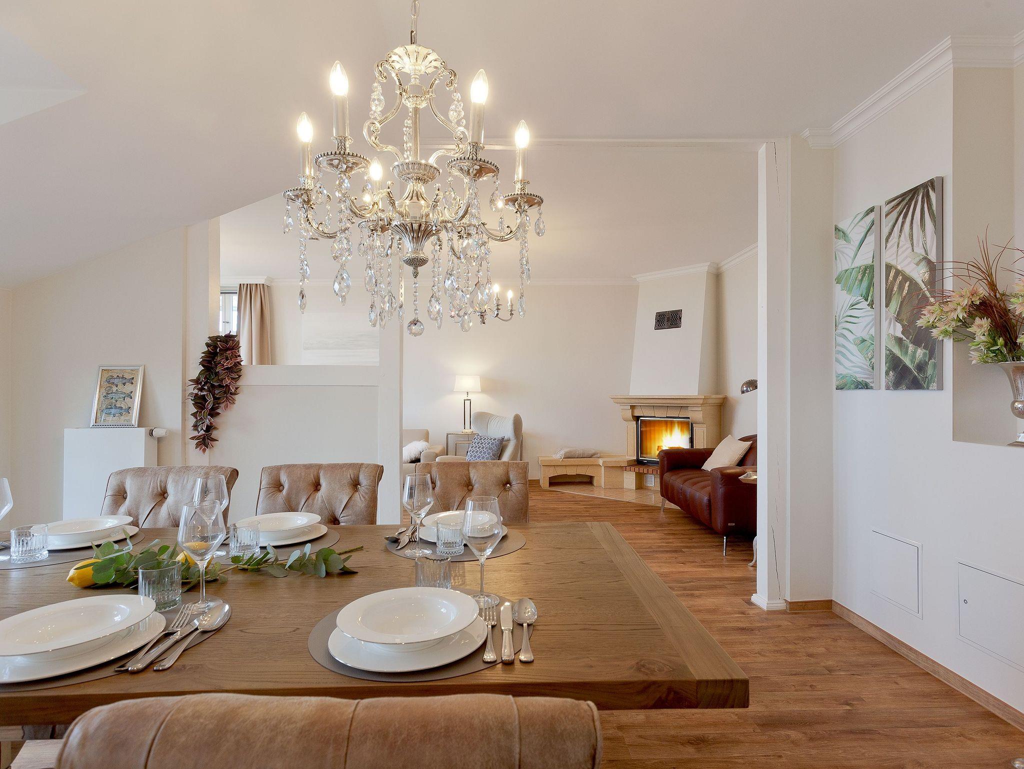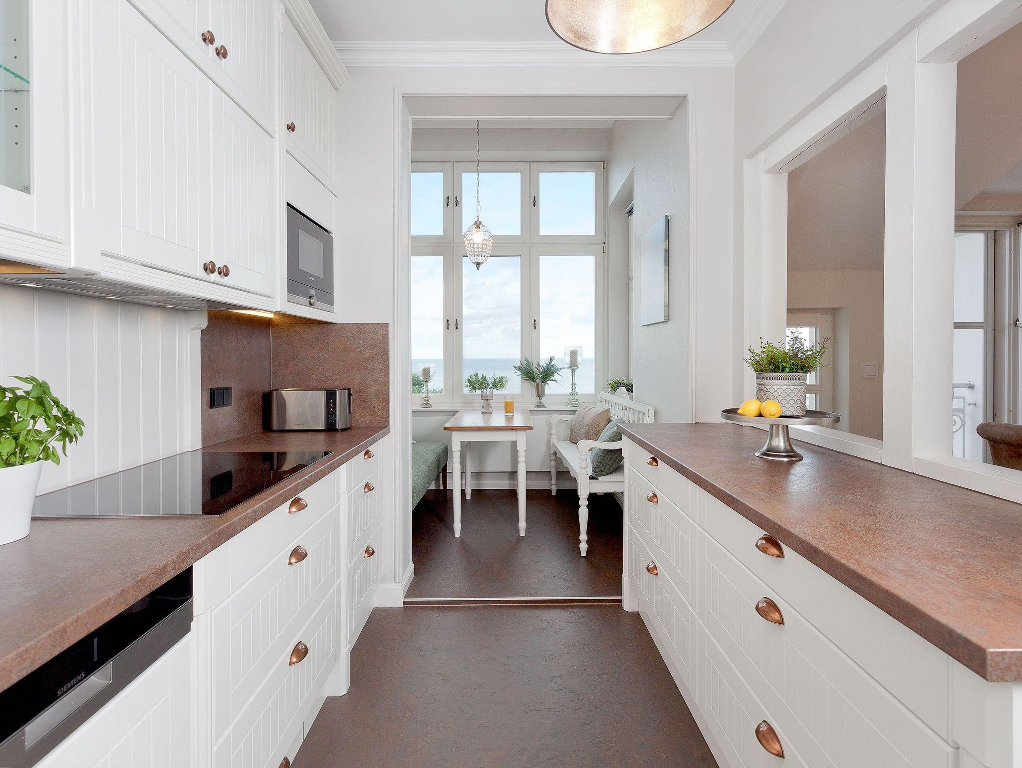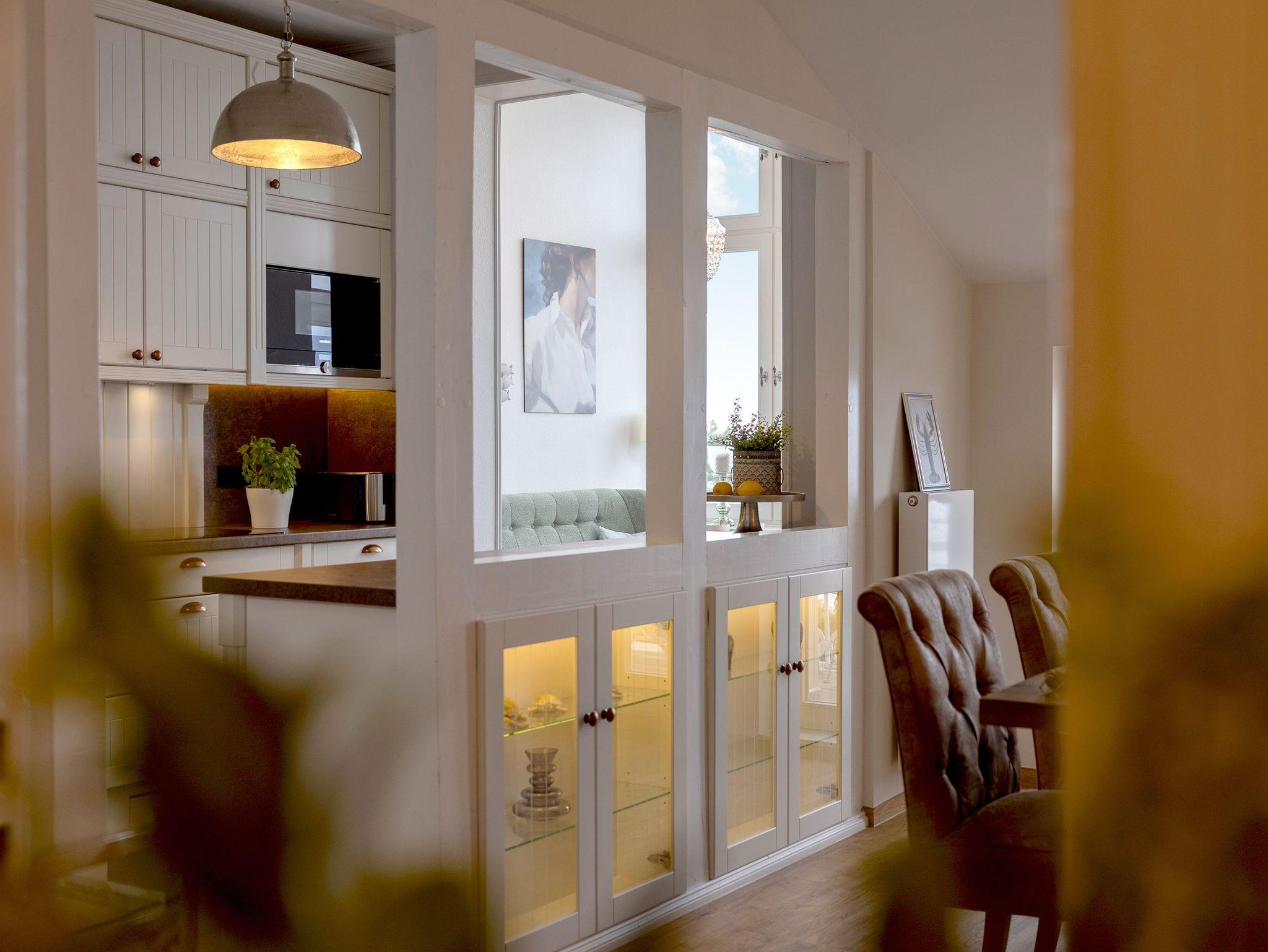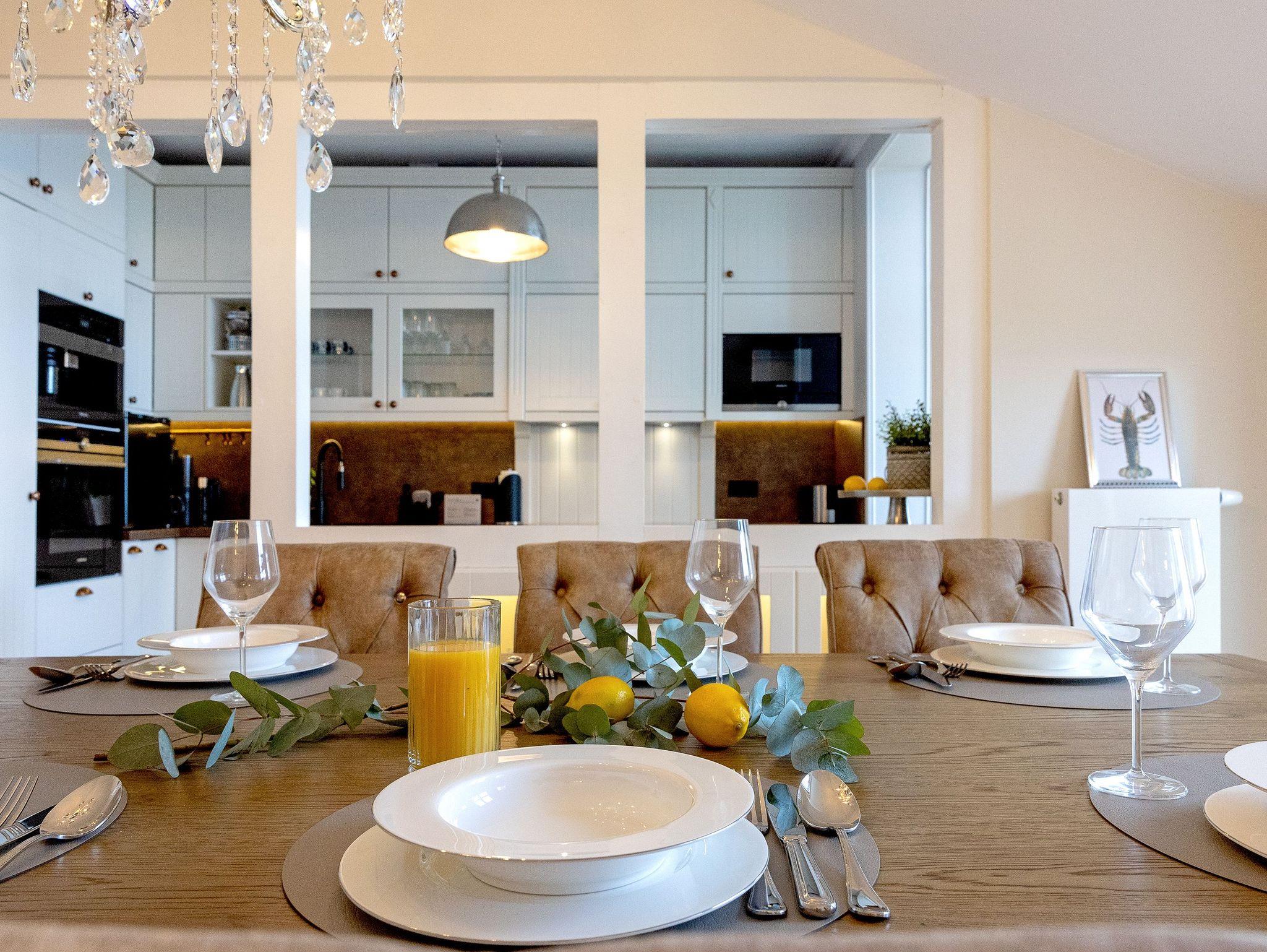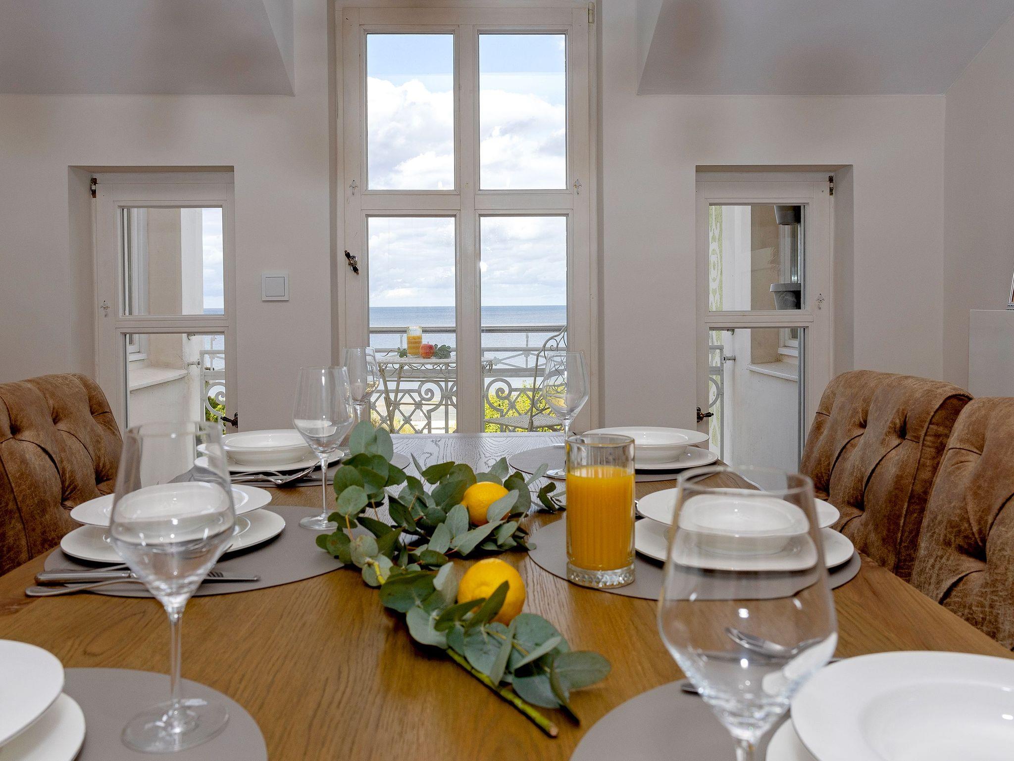 Die voll ausgestattete Küche ermöglicht Ihnen, kulinarische Träume in die Tat umzusetzen. Vom Induktionsfeld über den Geschirrspüler bis zum Toaster ist alles da, was Sie brauchen. Hier können Sie die Zutaten, die Sie in einem der nahegelegenen Supermärkte oder beim Fischer erstanden haben, in ein köstliches Abendessen verwandeln, während Sie die herrlichen Farben der untergehenden Sonne vom Balkon aus beobachten. Vielleicht nehmen Sie Ihr Glas Wein mit nach draußen, spüren die frische Brise und genießen diesen Moment der vollkommenen Entspannung. Sollte das Wetter einmal nicht mitspielen, lädt Sie die gemütliche Sitzecke in der Küche zu einem sagenhaften Blick auf die Ostsee ein. Ein weiterer großzügiger Esstisch wartet auf Sie und Ihre Lieben bei gemeinsamen Spieleabenden. Die offenen Wohn-, Koch- und Essbereiche sorgen dafür, dass Sie stets in Gesellschaft Ihrer Familie oder Freunden sind und die gemeinsame Zeit genießen können.