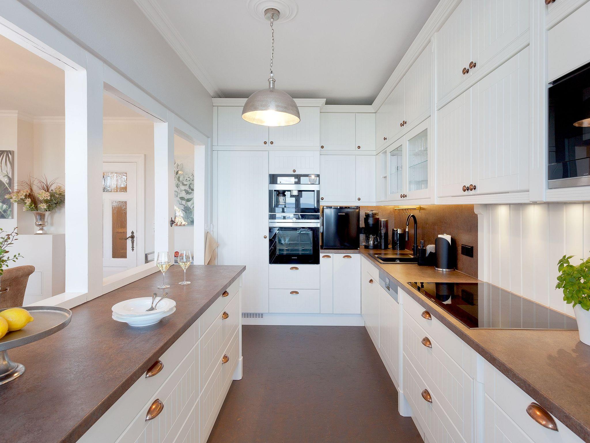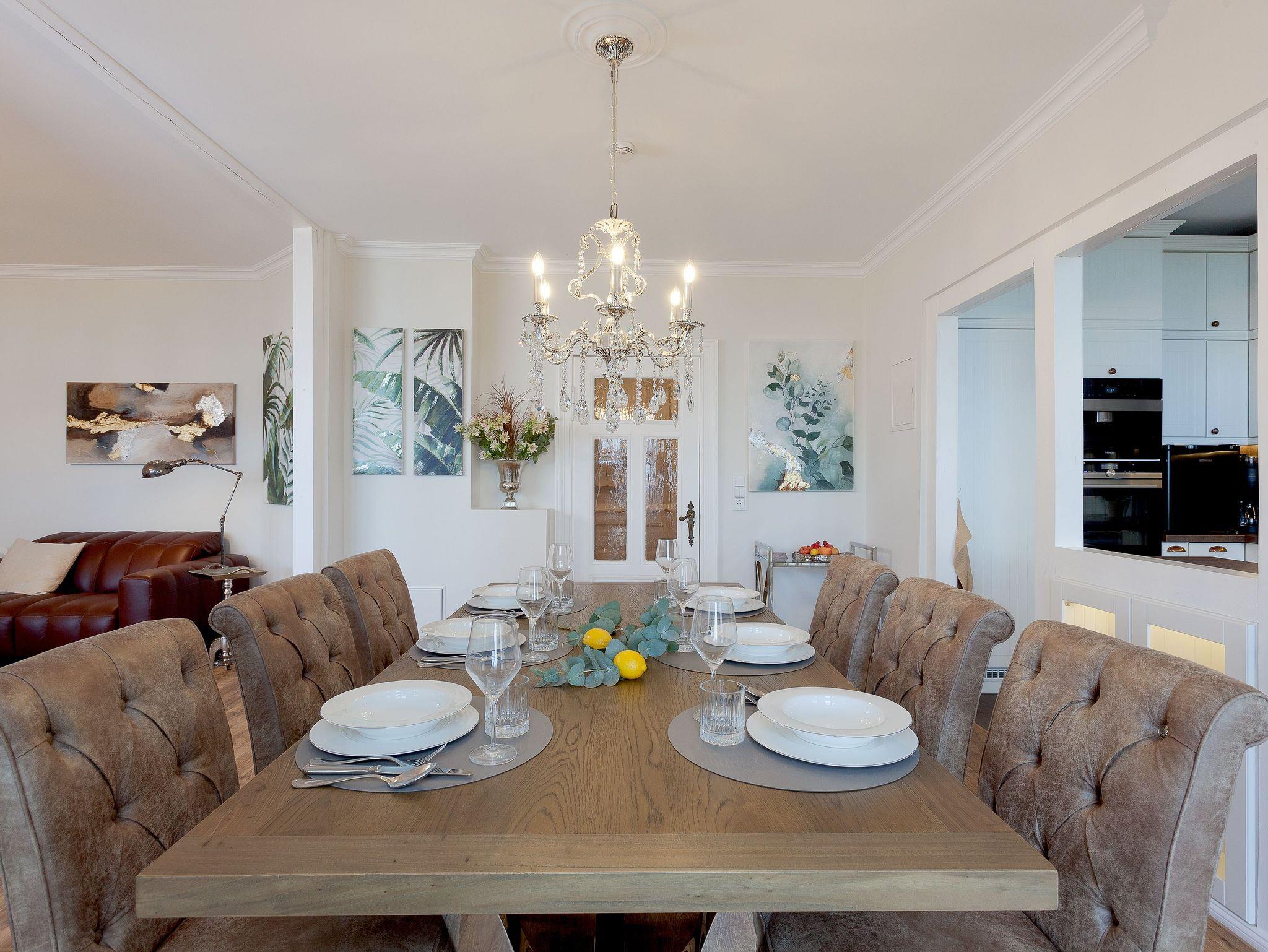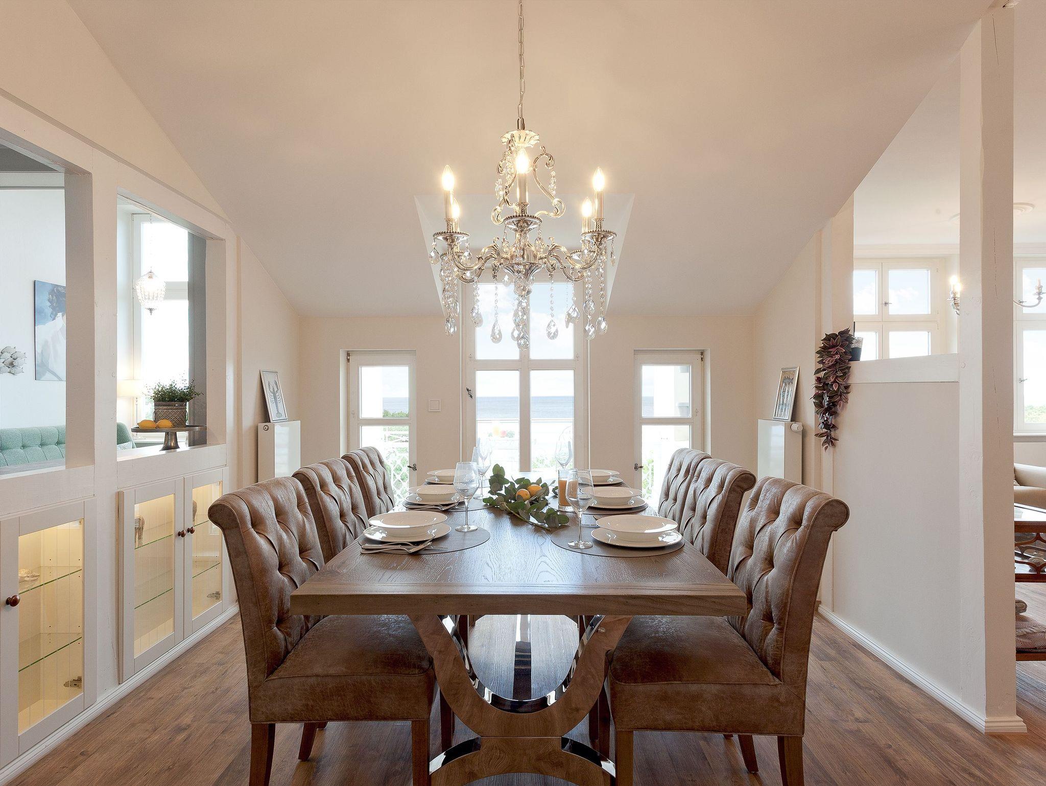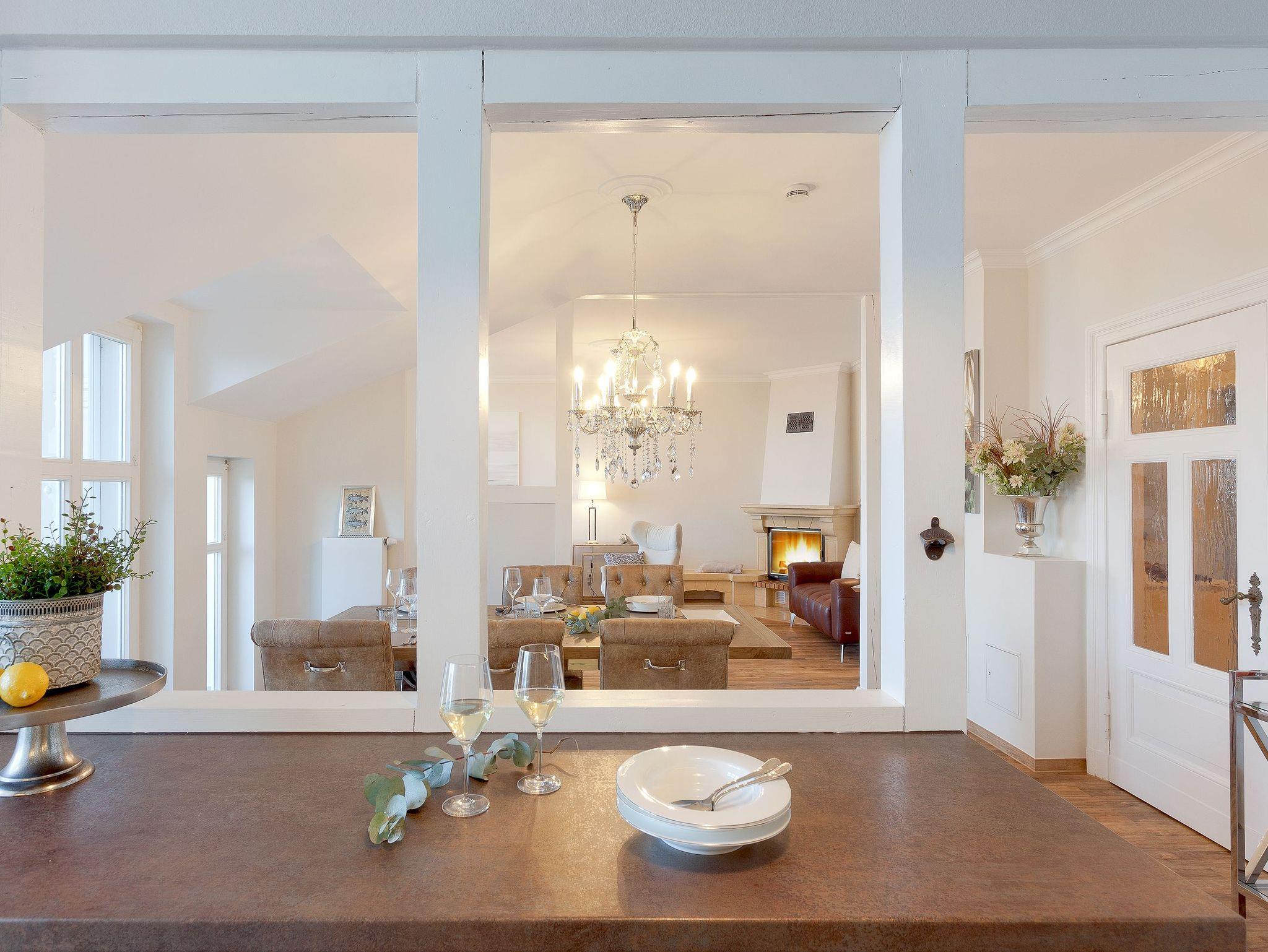 Die voll ausgestattete Küche ermöglicht Ihnen, kulinarische Träume in die Tat umzusetzen. Vom Induktionsfeld über den Geschirrspüler bis zum Toaster ist alles da, was Sie brauchen. Hier können Sie die Zutaten, die Sie in einem der nahegelegenen Supermärkte oder beim Fischer erstanden haben, in ein köstliches Abendessen verwandeln, während Sie die herrlichen Farben der untergehenden Sonne vom Balkon aus beobachten. Vielleicht nehmen Sie Ihr Glas Wein mit nach draußen, spüren die frische Brise und genießen diesen Moment der vollkommenen Entspannung. Sollte das Wetter einmal nicht mitspielen, lädt Sie die gemütliche Sitzecke in der Küche zu einem sagenhaften Blick auf die Ostsee ein. Ein weiterer großzügiger Esstisch wartet auf Sie und Ihre Lieben bei gemeinsamen Spieleabenden. Die offenen Wohn-, Koch- und Essbereiche sorgen dafür, dass Sie stets in Gesellschaft Ihrer Familie oder Freunden sind und die gemeinsame Zeit genießen können.