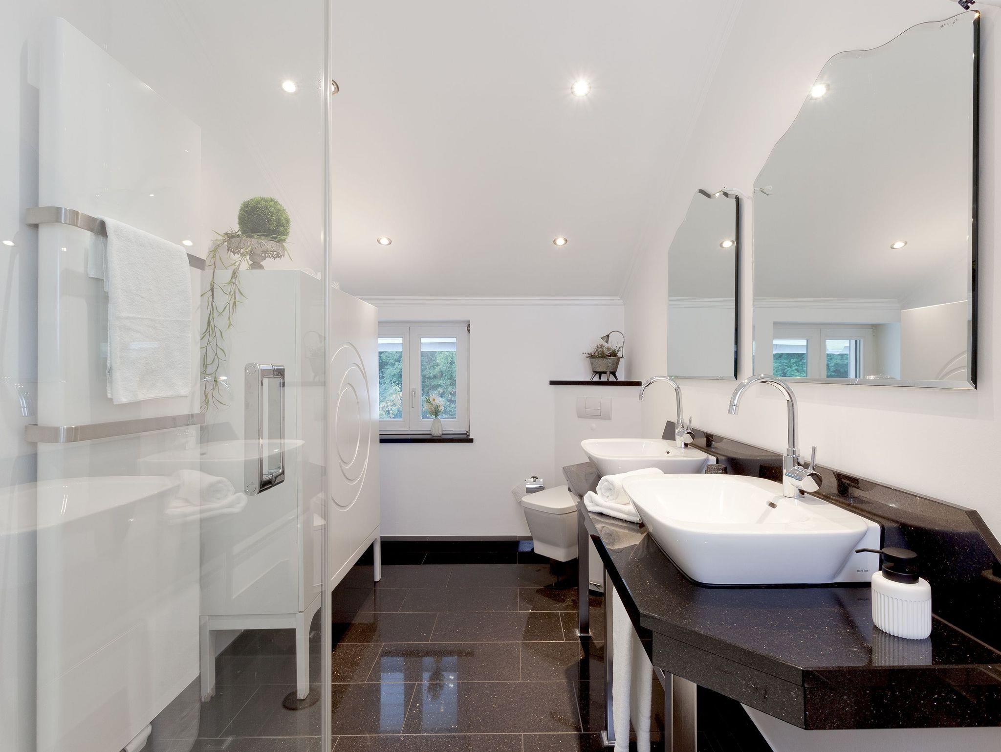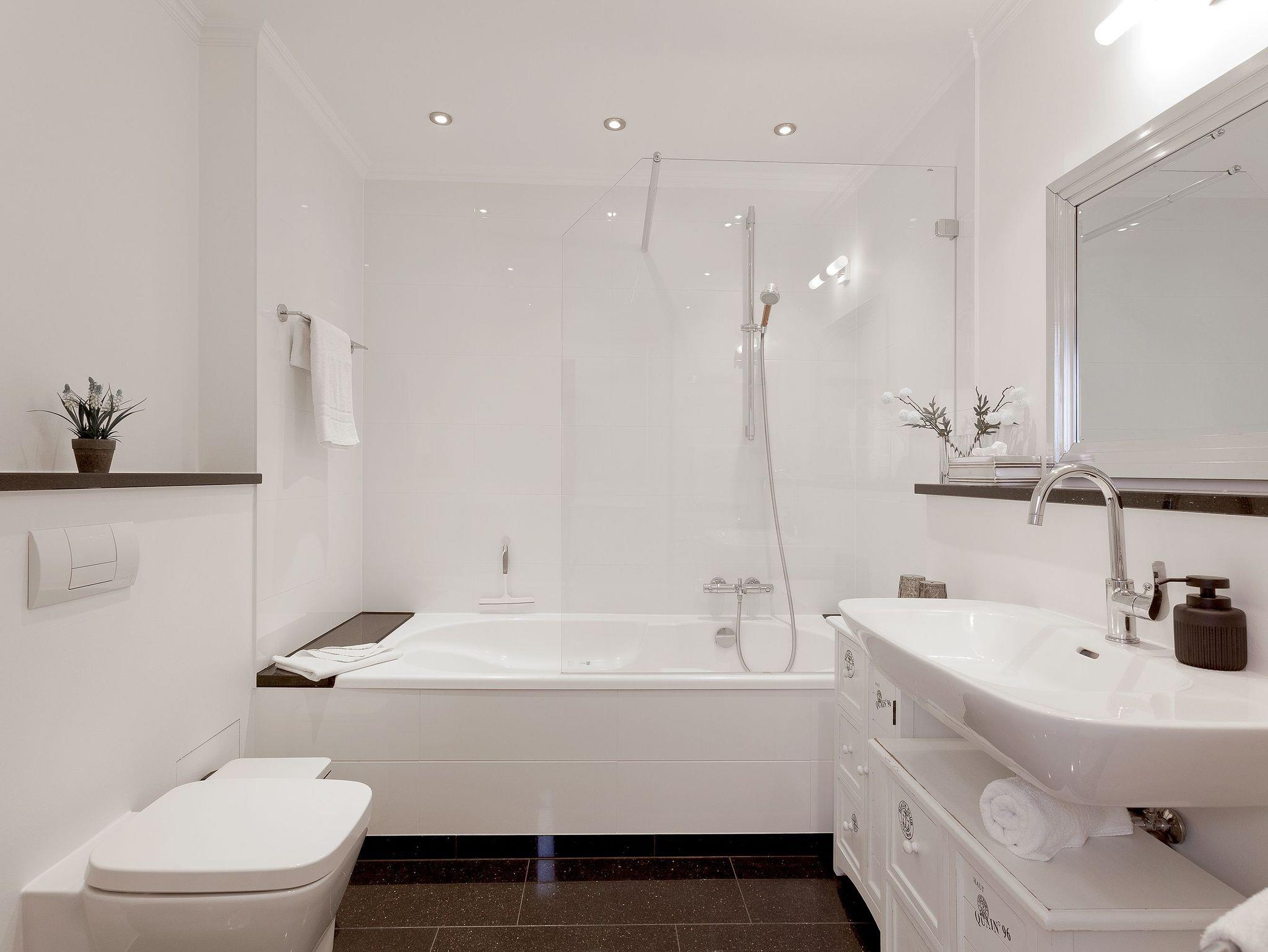 Zwei moderne Badezimmer sorgen für zusätzlichen Komfort: Ein Hauptbad mit Badewanne, Dusche, WC und Waschtrockner sowie ein weiteres mit Dusche und WC. Alles ist für Sie bereit vom flauschigen Handtuch bis zum frisch bezogenen Bett, damit Sie sich ab dem ersten Moment wie zu Hause fühlen.