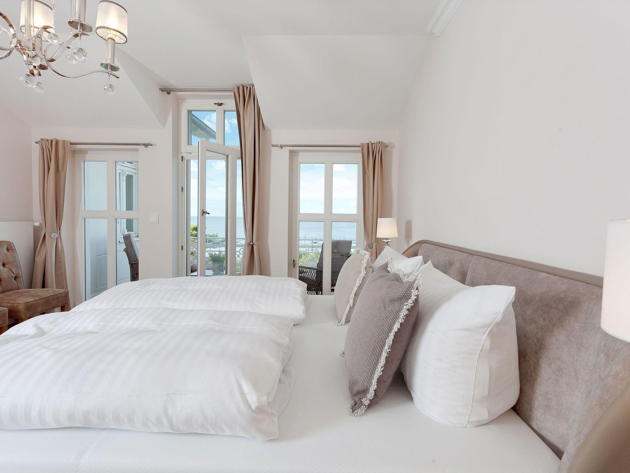 • 1. Master-Schlafzimmer mit Boxspringbett (180 x 200 cm) und einem Balkon mit atemberaubender Aussicht auf die Ostsee.