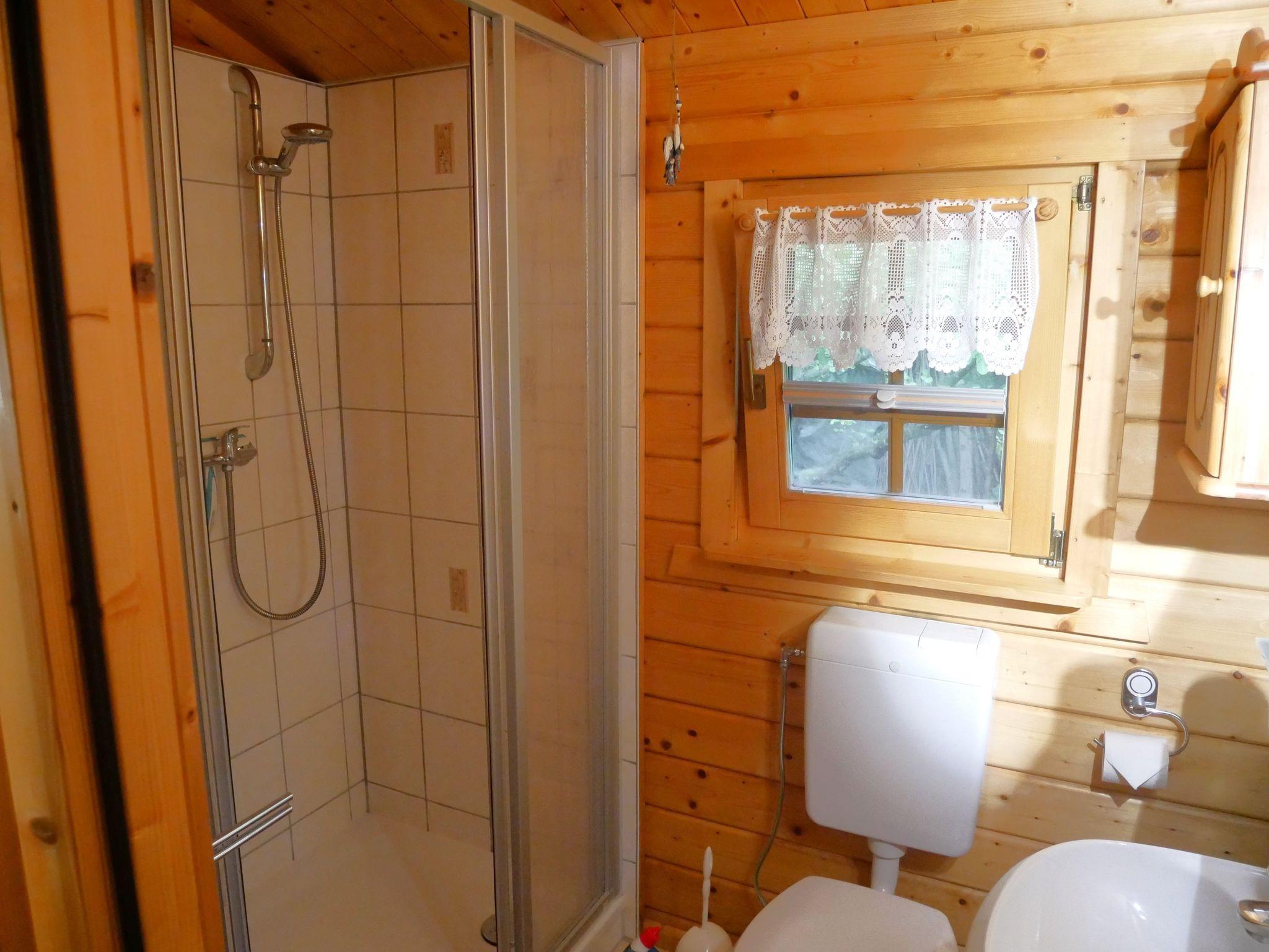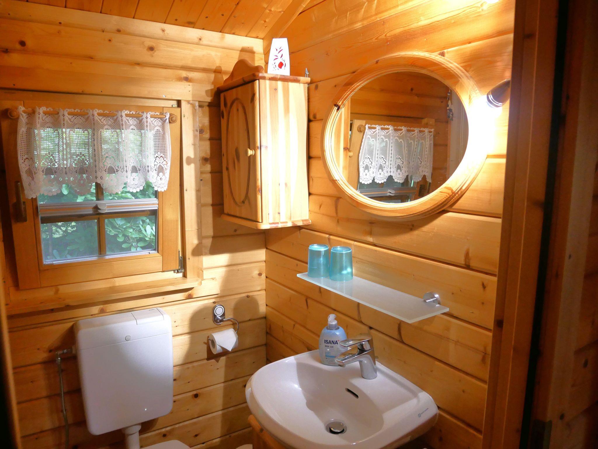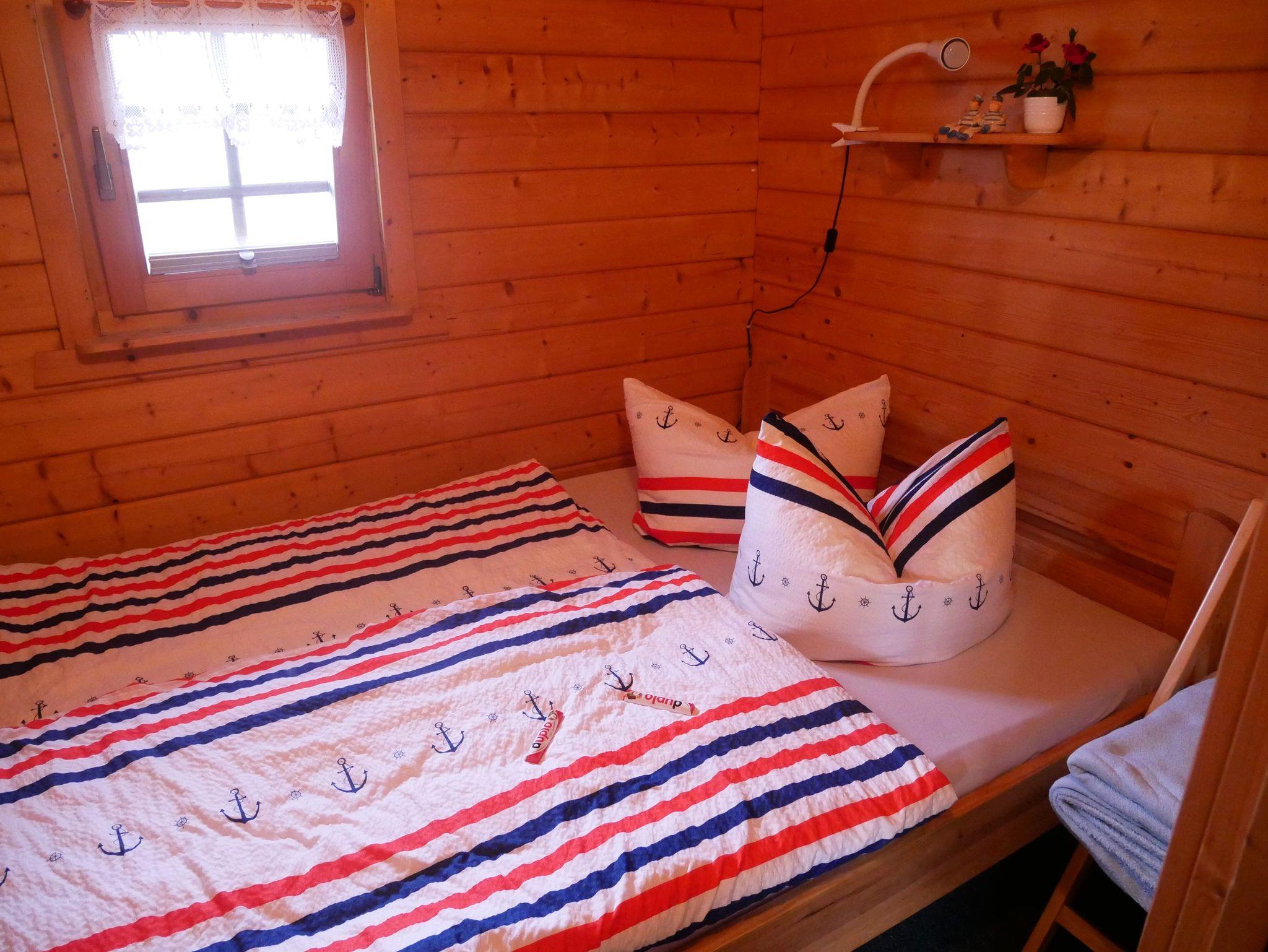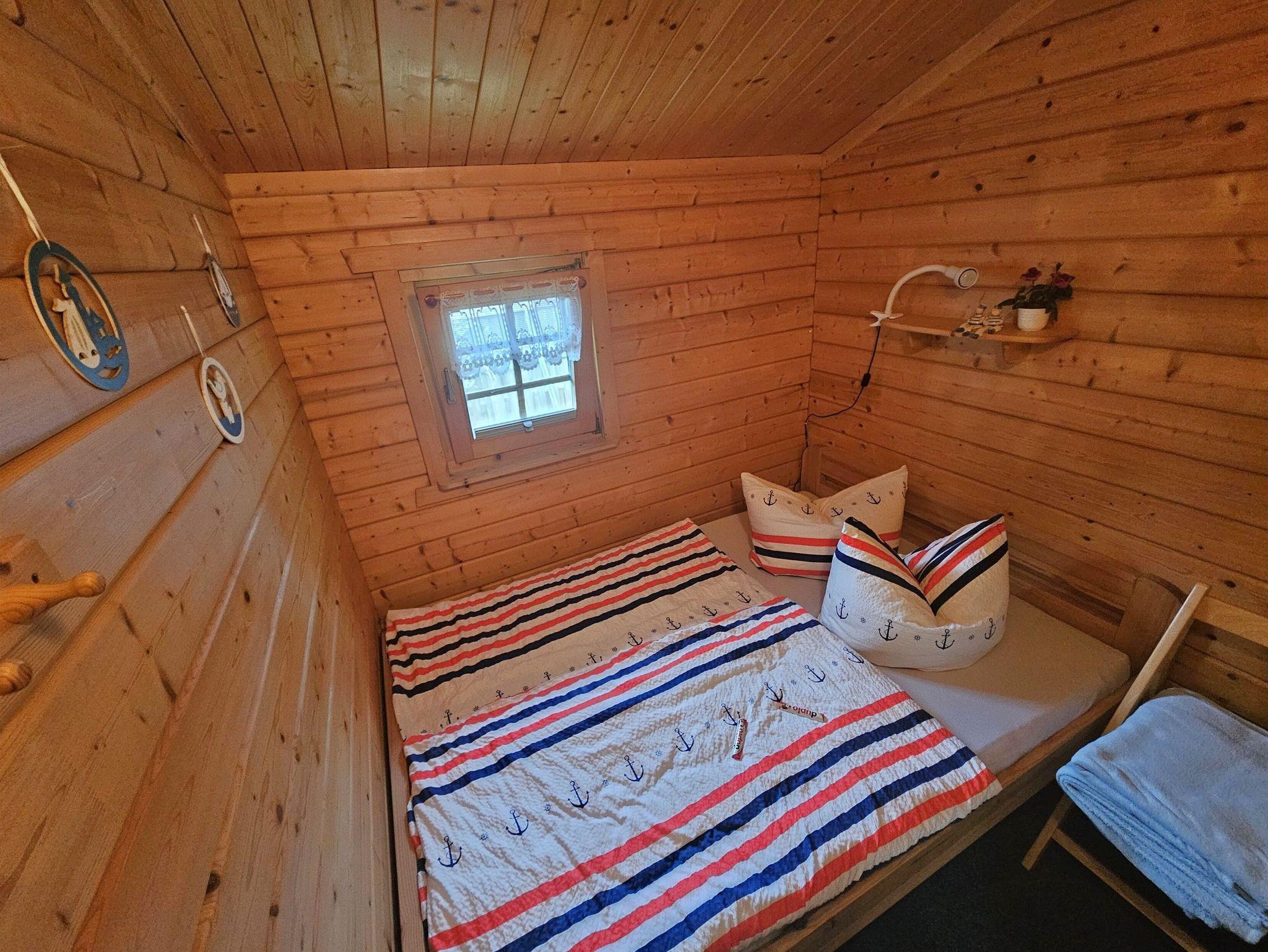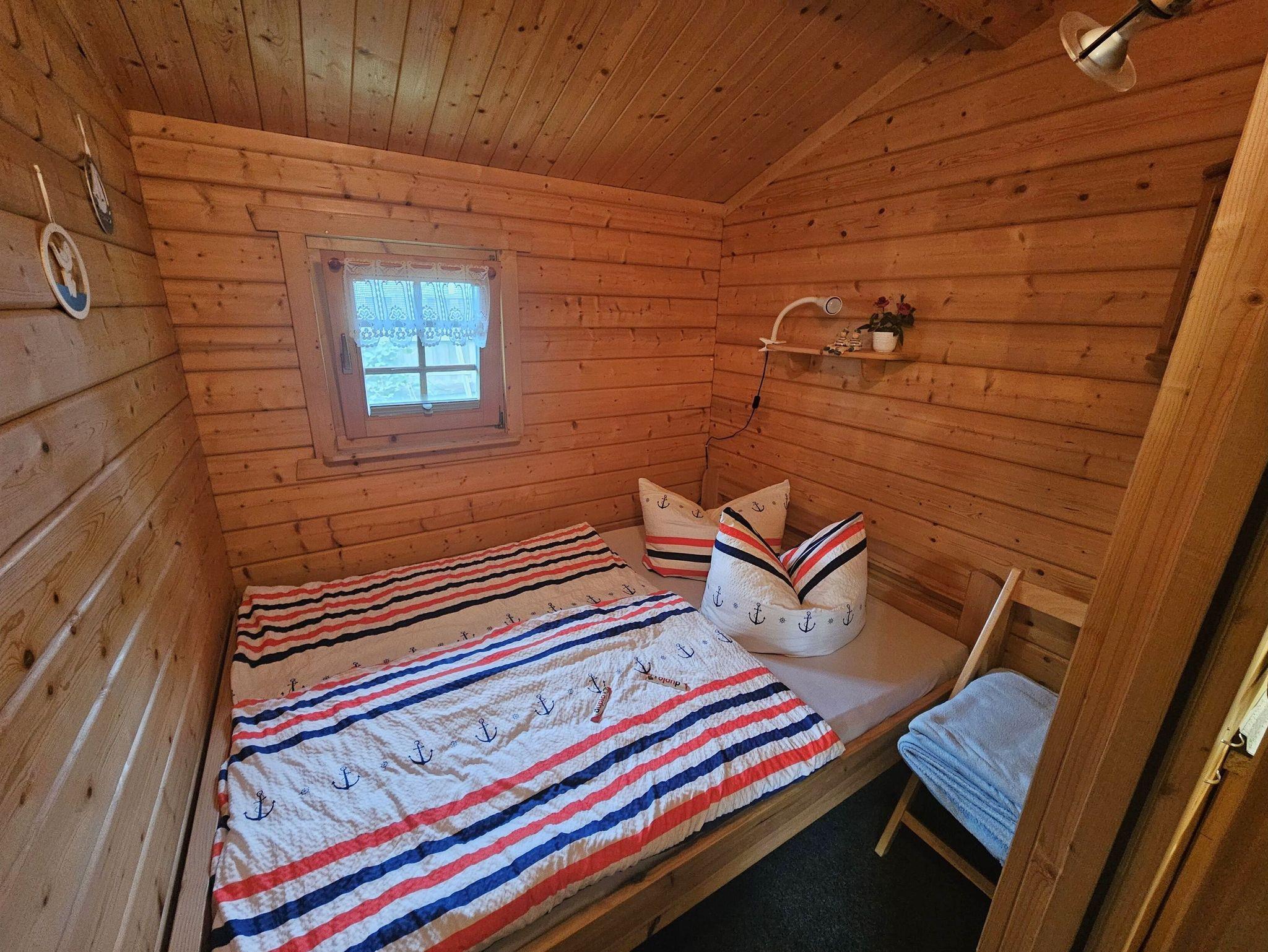 Das Schlafzimmer ist mit einem Doppelbett (1,40 m x 2,00 m) ausgestattet. Das Badezimmer verfügt über eine Dusche/WC und einen Haartrockner.