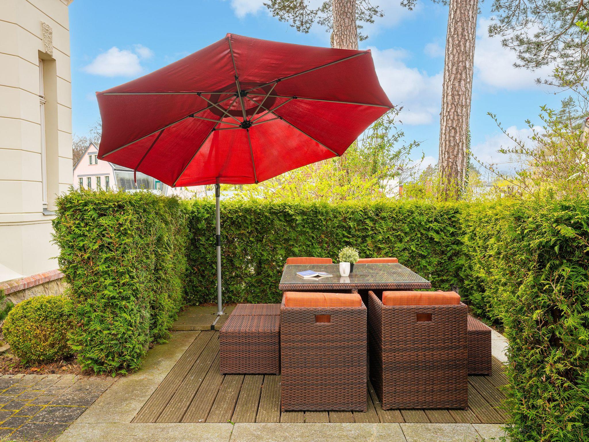Hier wird Ihnen auf 66 Quadratmetern eine komplett ausgestattete Ferienwohnung mit eigener Nordost-Terrasse und Gartenanteil geboten, die in diesem Objekt einmalig ist. Des Weiteren können Sie auf gleicher Etage auf den Wellnessbereich zurückgreifen, der Ihnen ein einmaliges Saunaerlebnis in einer Ganzglassauna bietet mit eigenem Außenbereich.