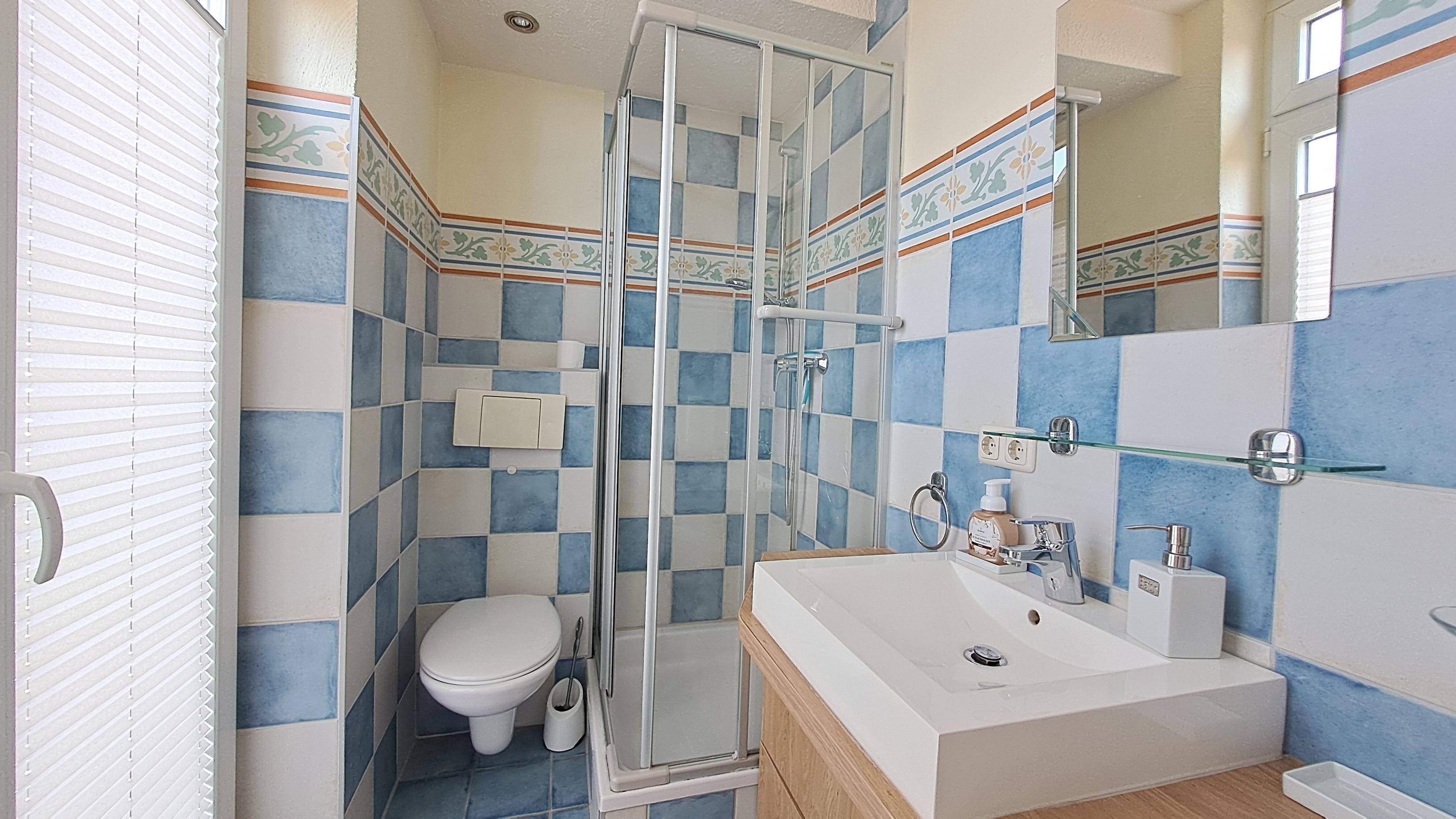 - Nr. I innenliegend mit Dusche, WC, Waschtisch und Spiegel