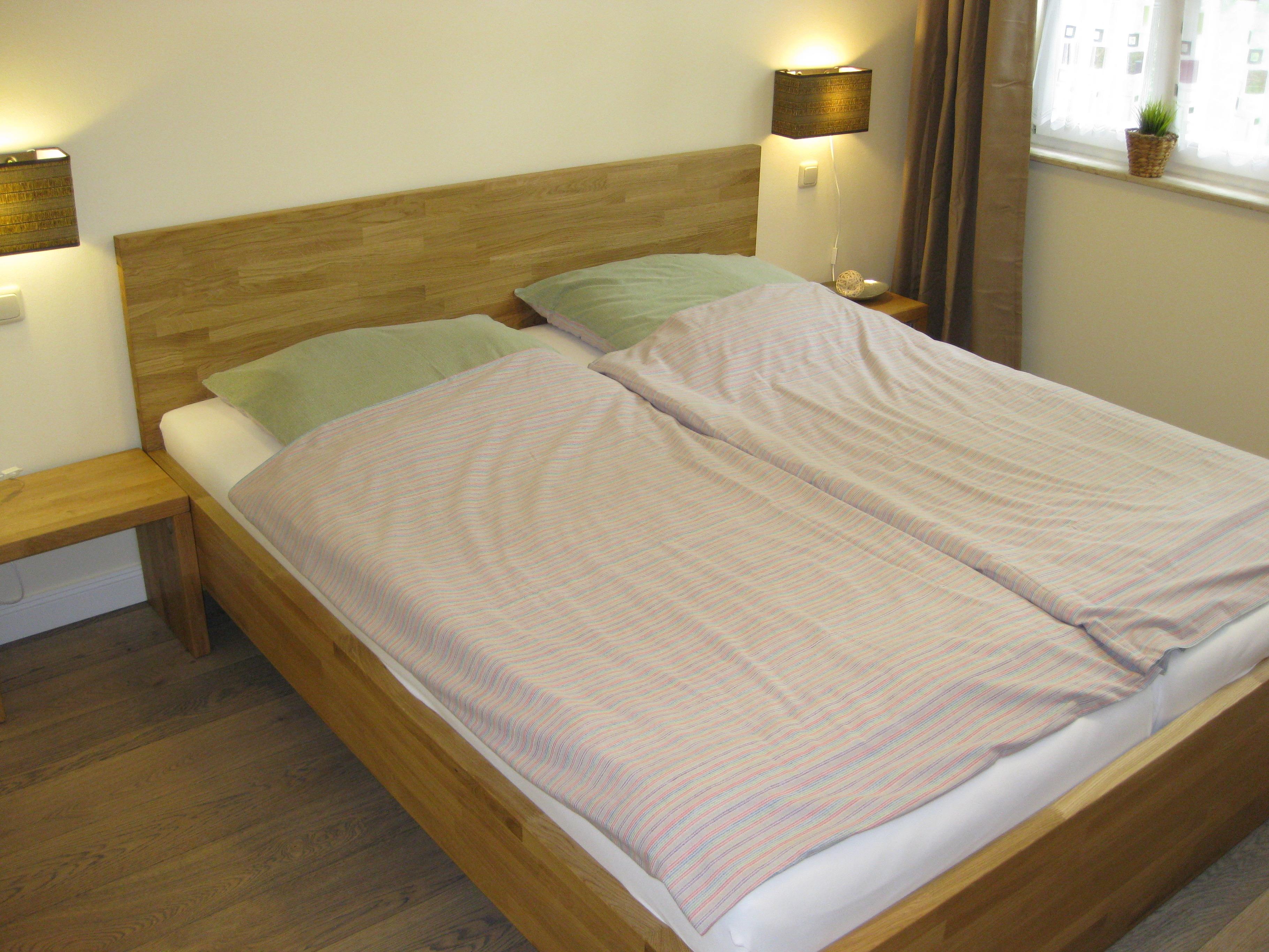 Es stehen insgesamt 3 Schlafplätze zur Verfügung, die sich wie folgt aufteilen: Im Schlafzimmer befindet sich ein großes Doppelbett (180 x 200 cm) und im Wohnraum eine Schlafcouch.