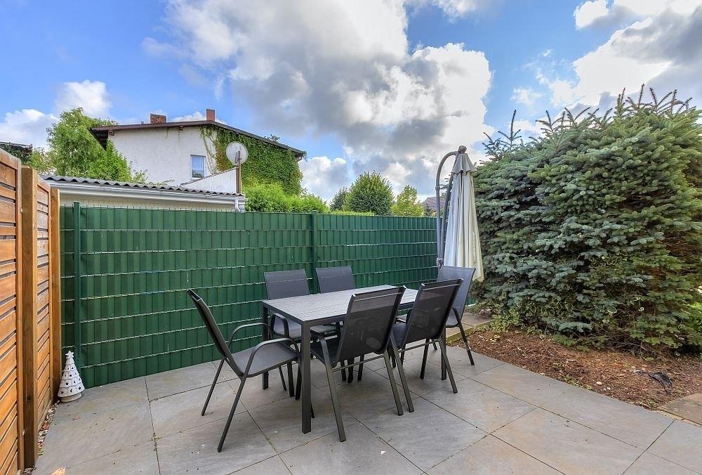 Mit Terrasse und eingezäuntem Grundstück. Hunde sehr willkommen. 2 Schlafzimmer. Bis zu 5 Personen. 80 qm. Komfortabel eingerichtet. Abschließbare Fahrradhütte. Nur 200 Meter bis zum Bahnhof. Gratis WLAN, Kinderreisebett/-hochstuhl. Stellplatz direkt am Haus