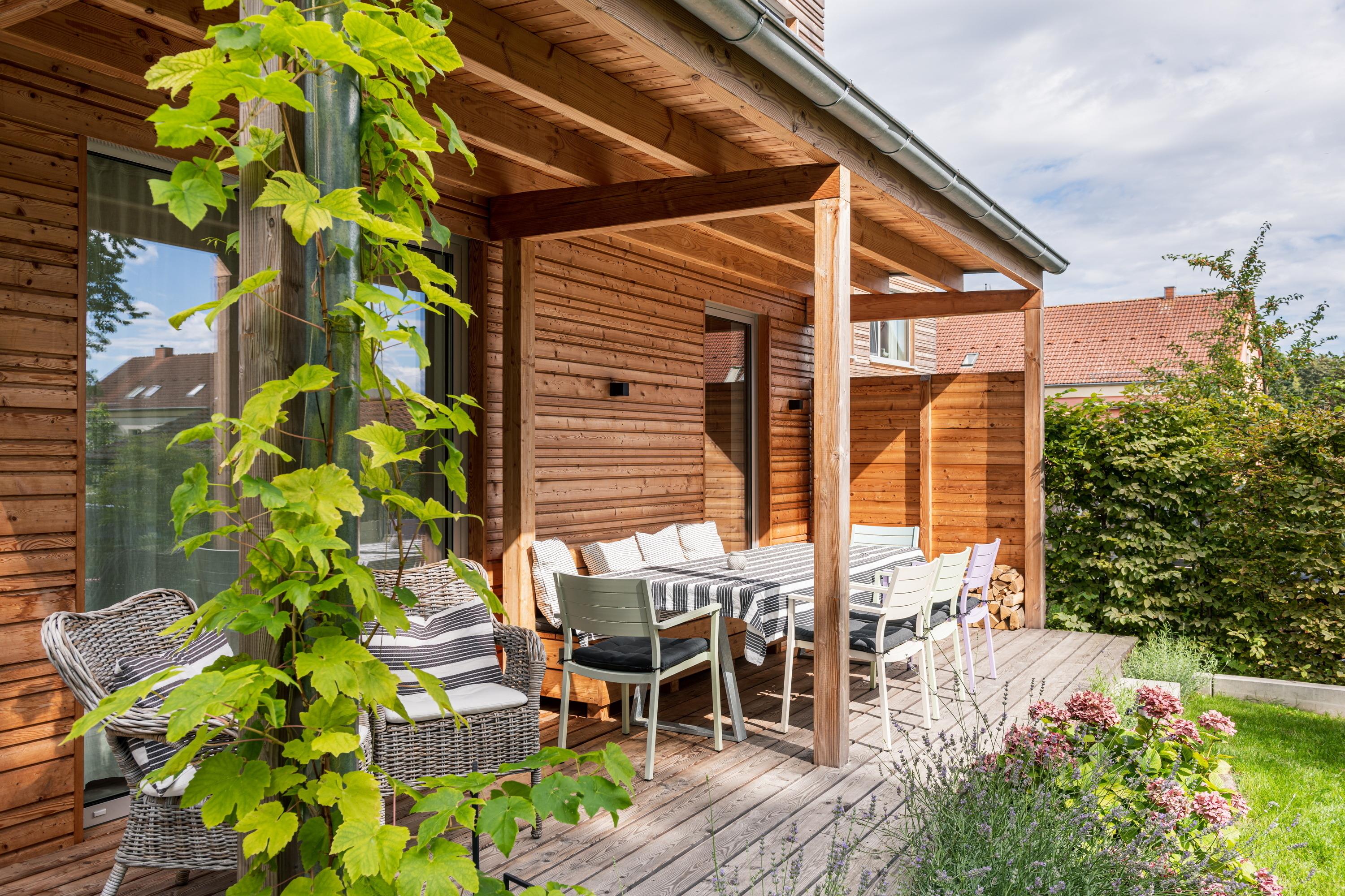 Ihr Ferienhaus STRANDGRAU befindet sich auf dem vorderen Teil des Grundstücks.