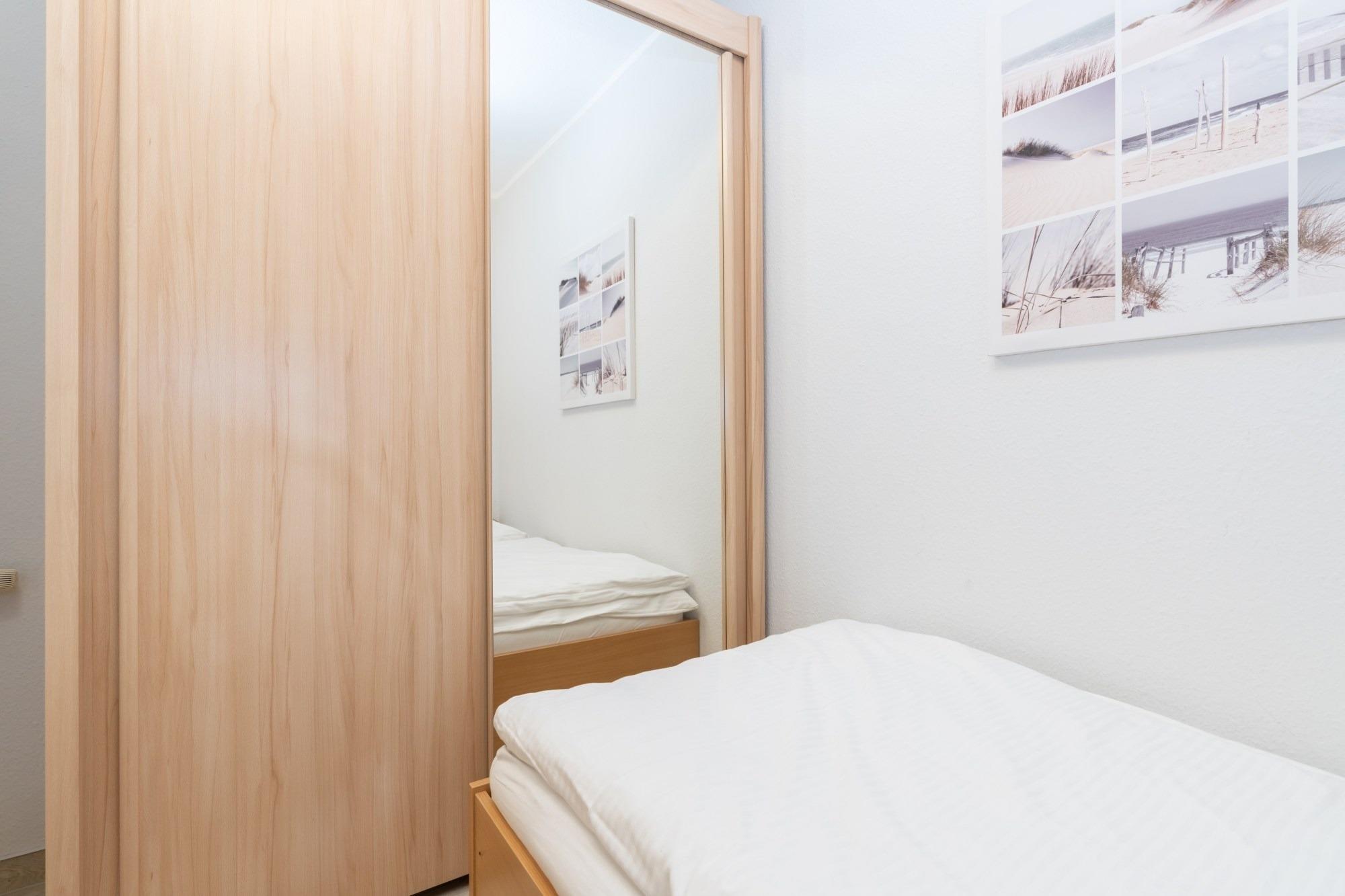 Im Schlafzimmer bieten Ihnen zwei Einzelbetten ausreichend Platz für einen erholsamen Schlaf.
