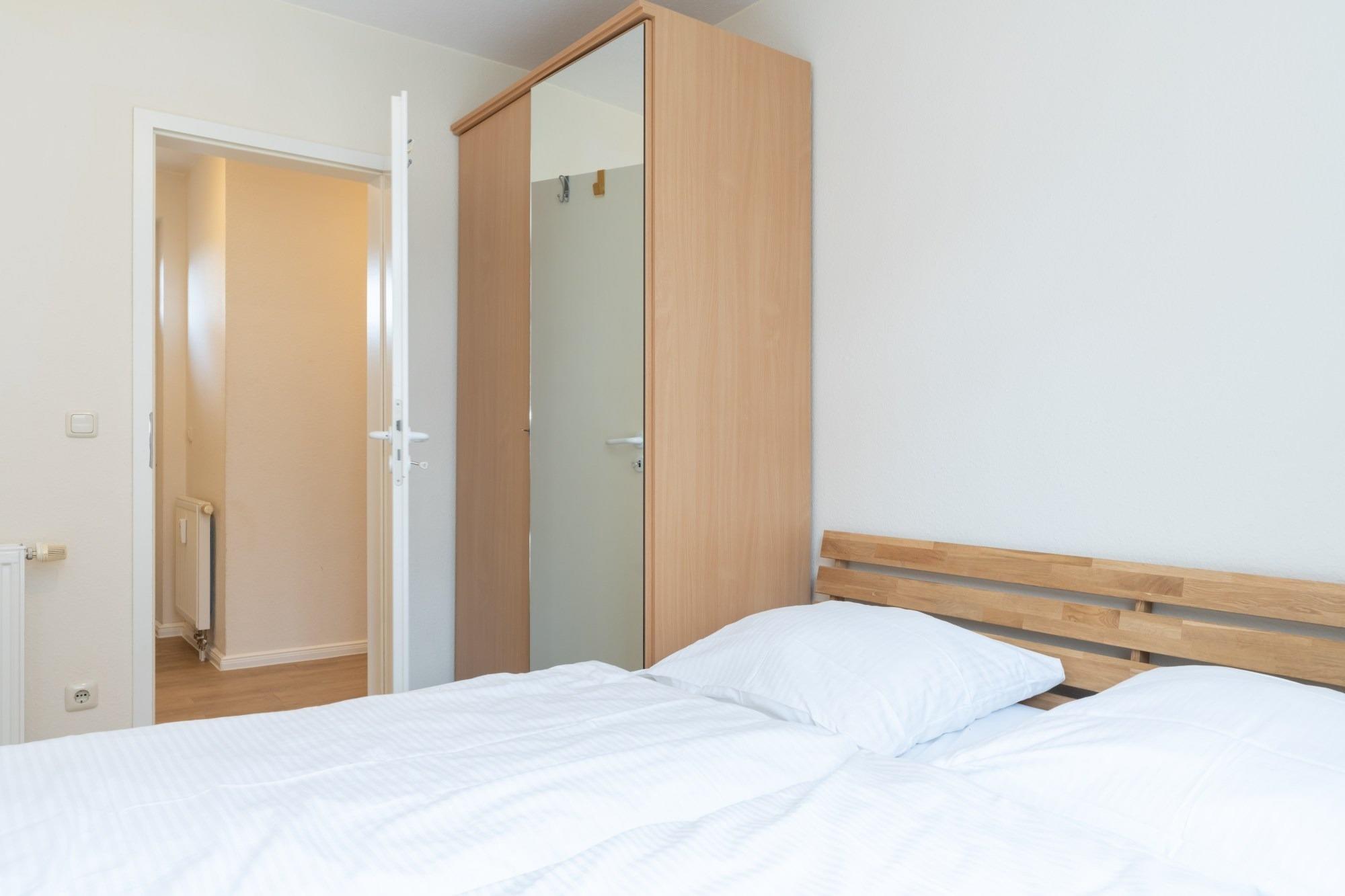 Im Schlafzimmer bietet Ihnen ein Doppelbett ausreichend Platz für einen erholsamen Schlaf.