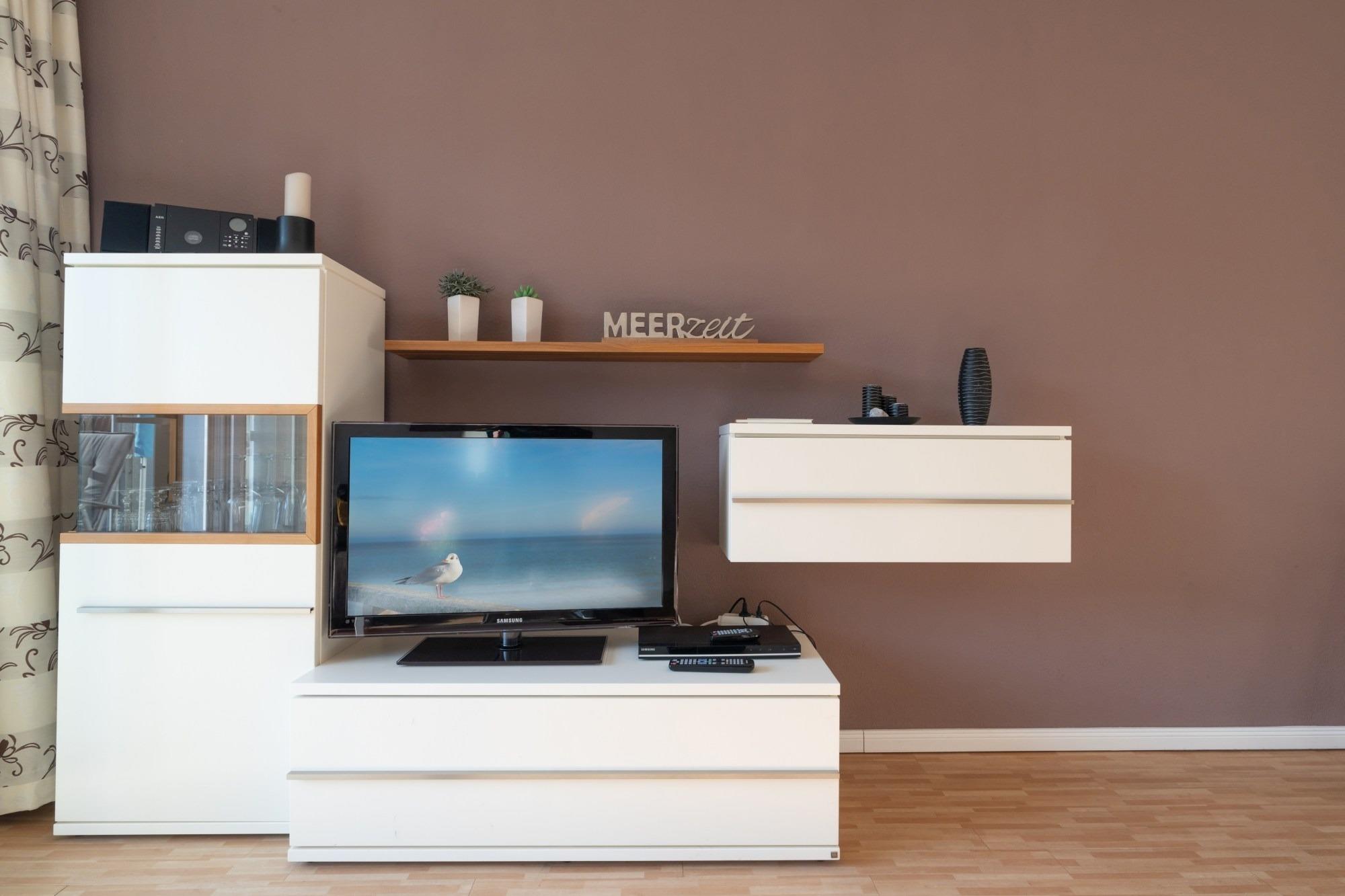 Im gemütlichen Wohnbereich laden bequeme Polstergarnituren und ein Flachbildfernseher zu geselligen Abenden ein. Der Essbereich ist im Wohnbereich integriert und ein Tisch mit 3 Stühlen bietet hier ausreichend Platz zum gemeinsamen Essen.