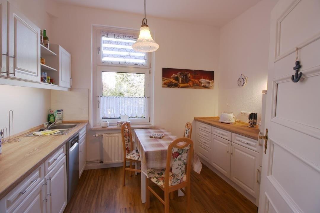 Die Wohnung verfügt auch über ein Badezimmer mit WC, Dusche, Fußbodenheizung und zwei Fenstern. Die moderne und helle Küche bietet ausreichend Platz zum gemeinsamen Kochen, Essen und Beisammensein. Auf dem Hof gibt es eine kleine Terrasse, wo man sich entspannen und die Nähe zum Meer und Wald genießen kann. Fahrräder können ebenfalls auf dem Hof abgestellt werden. Der Vermieter bittet darum, in der Wohnung nicht zu rauchen.