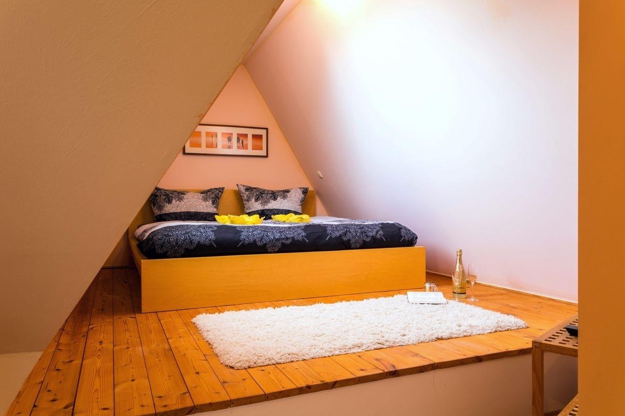 Im Dachgeschoss befinden sich zwei Schlafzimmer, eins mit einem Doppelbett (ca. 2,00m x 1,80m) und eins mit einem Doppelbett (ca. 2,00m x 1,60m). Es gibt außerdem eine Möglichkeit, Fahrräder abzustellen und einen PKW-Stellplatz. Der Strand ist ca. 10 Gehminuten entfernt. Ein Wäschepaket ist Bestandteil der Buchung und wird je nach gebuchter Gästezahl in der Ferienwohnung bereitgestellt.