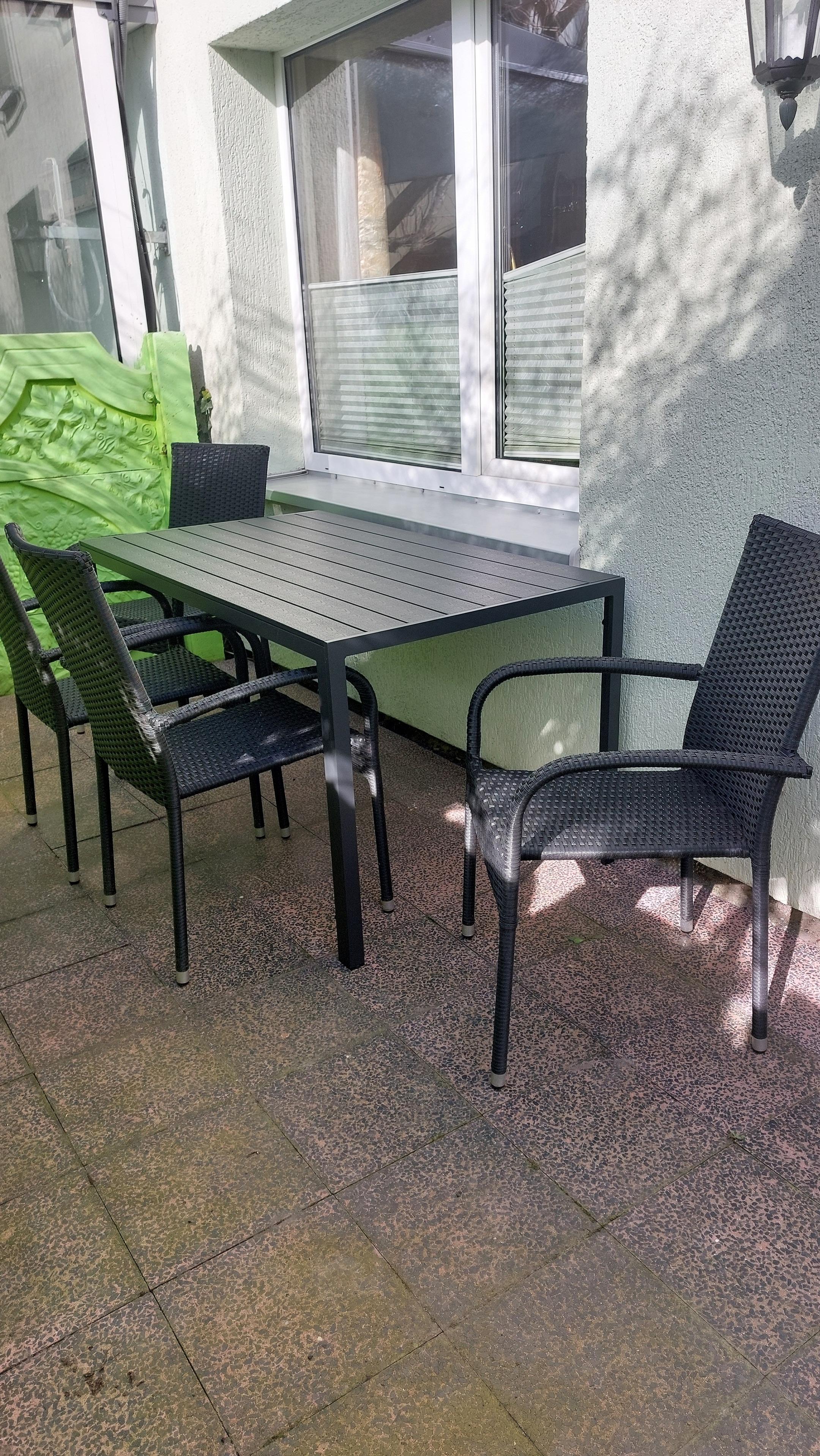 Im Erdgeschoß befindet sich der Wohnraum mit der Sitzecke +TV , der Essbereich und die gut ausgestattete Küchenzeile. Diese verfügt über Herd mit Ceranfeld, Backofen, Dunstabzughaube, Kühl - Gefrierkombination, Geschirrspüler, Wasserkocher, Kaffeemaschine, Toaster und Mikrowelle.