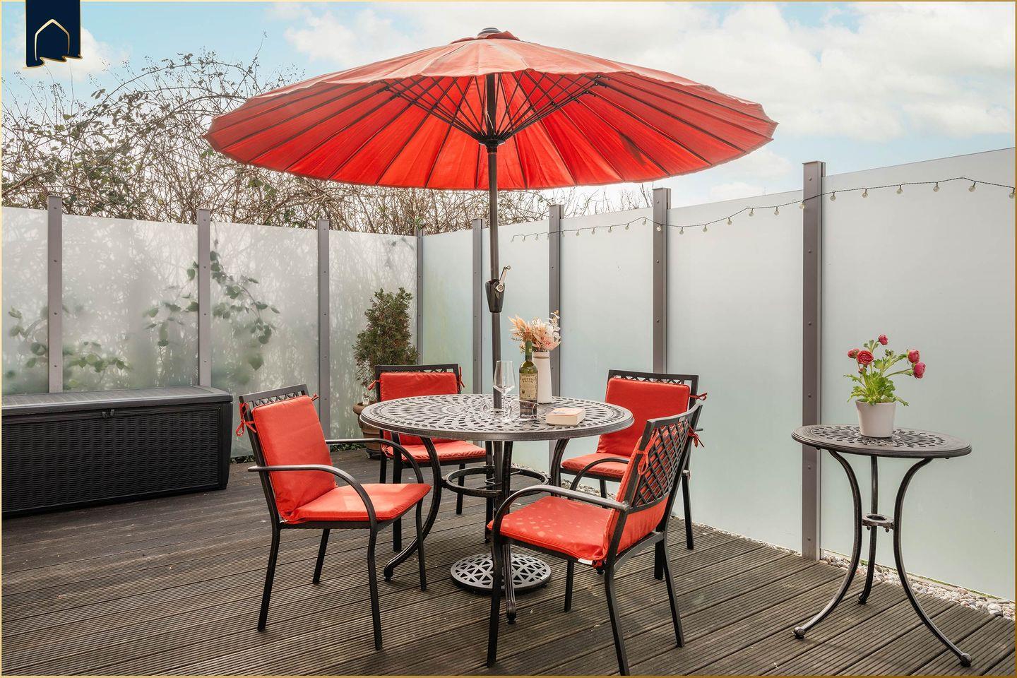 Ein echtes Highlight ist die private Terrasse mit Gartenmöbeln, Sonnenliegen, Sonnenschirm und Grill – perfekt für entspannte Stunden im Freien. Für dein Auto steht ein Privatparkplatz (Carport) zur Verfügung, eine Ladestation für E-Autos befindet sich ebenfalls vor Ort. Die Wohnung ist für Familien, Paare und Hundebesitzer gleichermaßen geeignet, denn Haustiere sind willkommen. Sichtschutz an allen Fenstern, Fliegengitter und liebevolle Details sorgen für zusätzlichen Komfort.