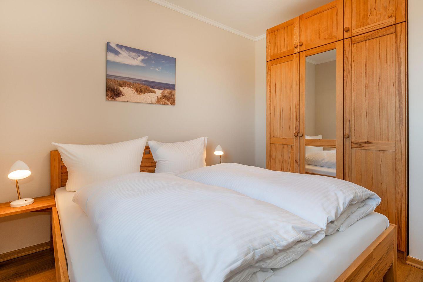 Das erste Schlafzimmer ist liebevoll mit einem großen Boxspringbett und Kleiderschrank eingerichtet. Im zweiten Schlafraum sind ebenfalls ein Doppelbett und ein Kleiderschrank zu finden, zusätzlich ist hier noch ein weiterer Fernseher angebracht.