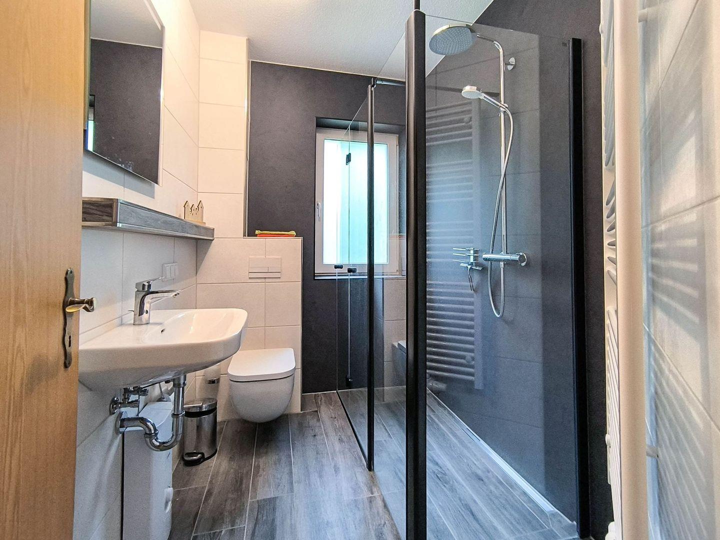 Besonderen Komfort bieten Ihnen die beiden Tageslicht-Bäder. So ist das erste Badezimmer mit einem Waschbecken, WC und einer ebenerdigen Dusche ausgestattet. Im zweiten Bad befindet sich, neben einem WC und Waschbecken, außerdem ein Waschtrockner, welcher Ihnen zur freien Verfügung steht.