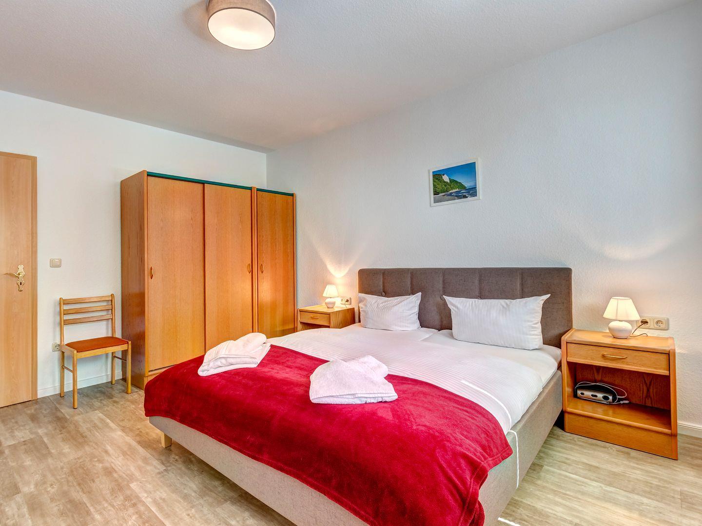 Das Schlafzimmer mit komfortablem Doppelbett lädt zu erholsamen Nächten ein, während das moderne Tageslichtbad mit Dusche für einen angenehmen Start in den Tag sorgt.