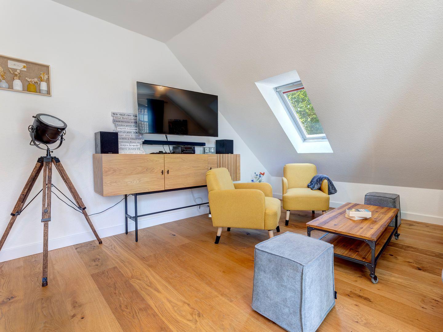Das erste Schlafzimmer ist mit einem komfortablen Doppelbett, getrennten Matratzen, einem Kleiderschrank und einem Fernseher mit DVD-Spieler eingerichtet. Das zweite Schlafzimmer verfügt über ein französisches Doppelbett sowie einen praktischen Schreibtisch, der sich hervorragend für eine Workation eignet – ideal, um Arbeit und Erholung miteinander zu verbinden.