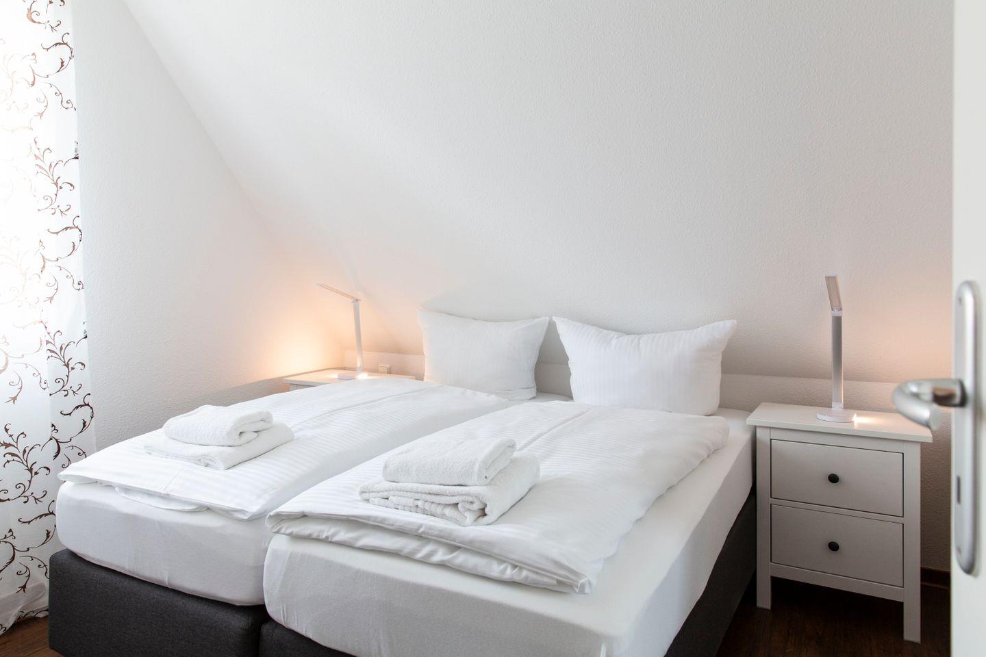- Bei Ihrer Anreise sind die Betten frisch bezogen, und die Handtücher liegen bereit (Erstausstattung).