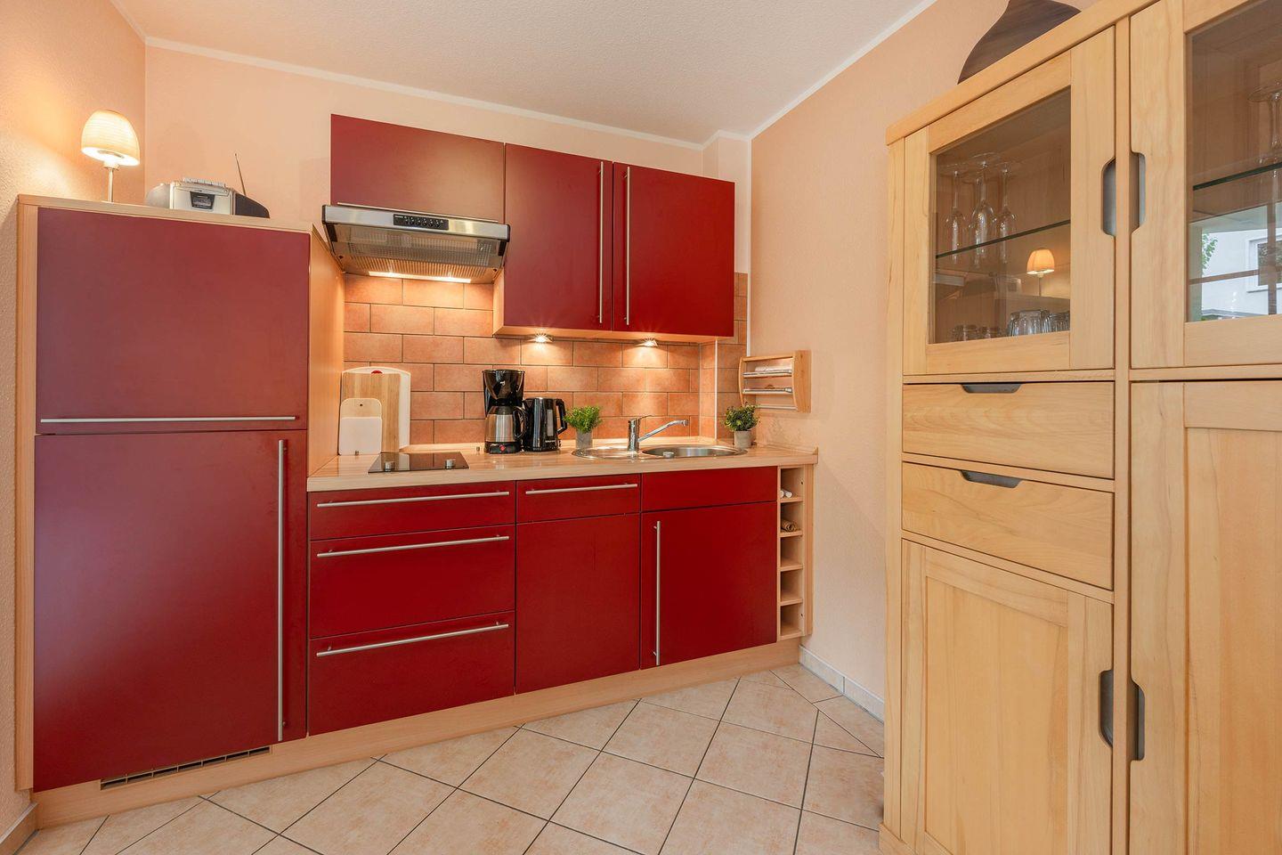 Die Ferienwohnung 01 im Erdgeschoss bietet hohen Wohnkomfort und Platz für vier Personen auf 65 Quadratmetern. Der Wohnraum ist hell und geschmackvoll eingerichtet und verfügt über einen Kabel-TV, einen Esstisch für gemeinsame Mahlzeiten sowie eine gemütliche und große Couchlandschaft. Die Küche ist räumlich geschickt abgetrennt und verfügt über ein Zwei-Platten-Ceranfeld, eine Mikrowelle mit Backfunktion und einen Geschirrspüler. Weitere Dinge des täglichen Bedarfs sind vorhanden und ermöglichen es Ihnen, eigene Mahlzeiten zuzubereiten und gemütlich in der Wohnung oder auf der Terrasse zu frühstücken oder zu Abend zu essen. Lassen Sie den Urlaubstag bei einem Glas Wein oder einem guten Buch ausklingen oder nutzen Sie die sonnenreichen Stunden des Tages um auf der Terrasse mit südwestlicher Ausrichtung zu entspannen.
