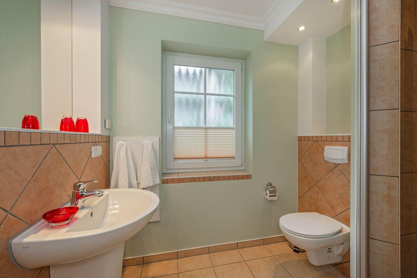 Ein schönes Wohlfühlbad mit ebenerdiger Dusche und WC, sowie ein kleines Gäste WC runden das Angebot ab.