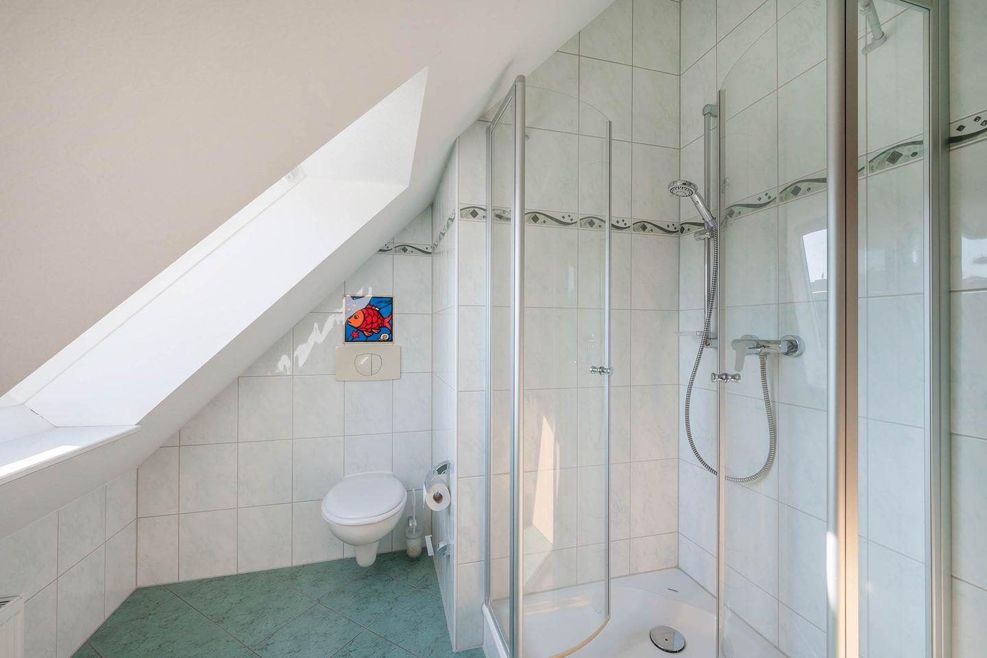 Besonders praktisch: Die Wohnung bietet zwei moderne Bäder, jeweils mit Dusche, Fenster und Spiegel. Morgens kann sich jeder nach seinem eigenen Rhythmus in Ruhe frisch machen - ideal für Familien oder Paare.