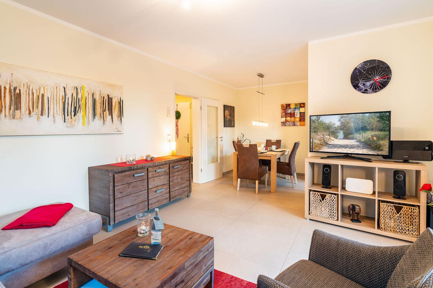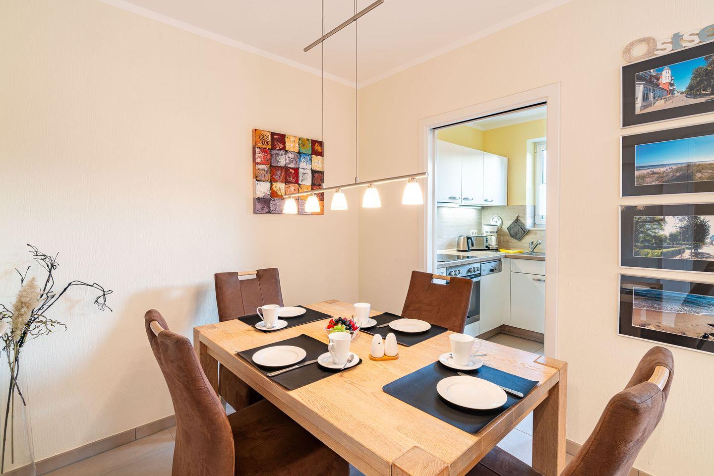 Für einen sorgenfreien Start in den Urlaub ist die Ferienwohnung sofort bezugsfertig: Alle Betten sind frisch bezogen, ausreichend Handtücher sind vorhanden und eine Grundausstattung an wichtigen Utensilien sorgt dafür, dass Sie sich direkt wie zuhause fühlen. Genießen Sie Ihren Aufenthalt in dieser charmanten Ferienwohnung, die modernen Komfort mit einer einladenden Atmosphäre verbindet und Ihnen einen unvergesslichen Urlaub auf Usedom garantiert.