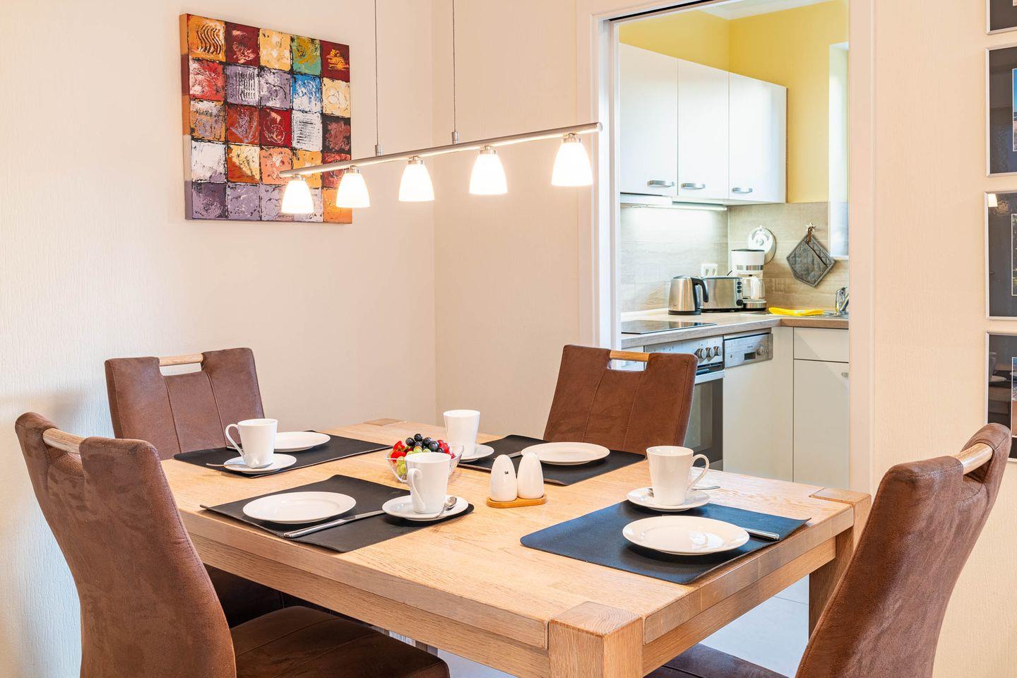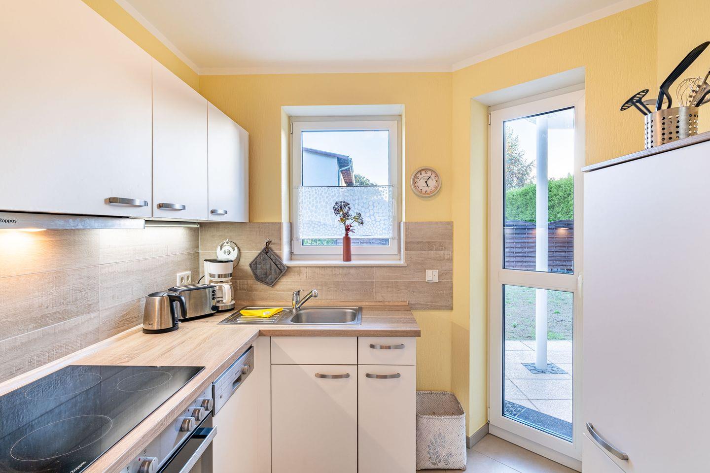 Die abgeschlossene Küche ist voll ausgestattet und lässt keine Wünsche offen. Ausgestattet mit Backofen, Spülmaschine, Ceranfeld und Mikrowelle, können Sie hier nach Herzenslust kochen und genießen. Dank dieser hochwertigen Kücheneinrichtung bereitet die Zubereitung von Mahlzeiten fast so viel Freude wie das anschließende gemeinsame Essen in der geselligen Runde.