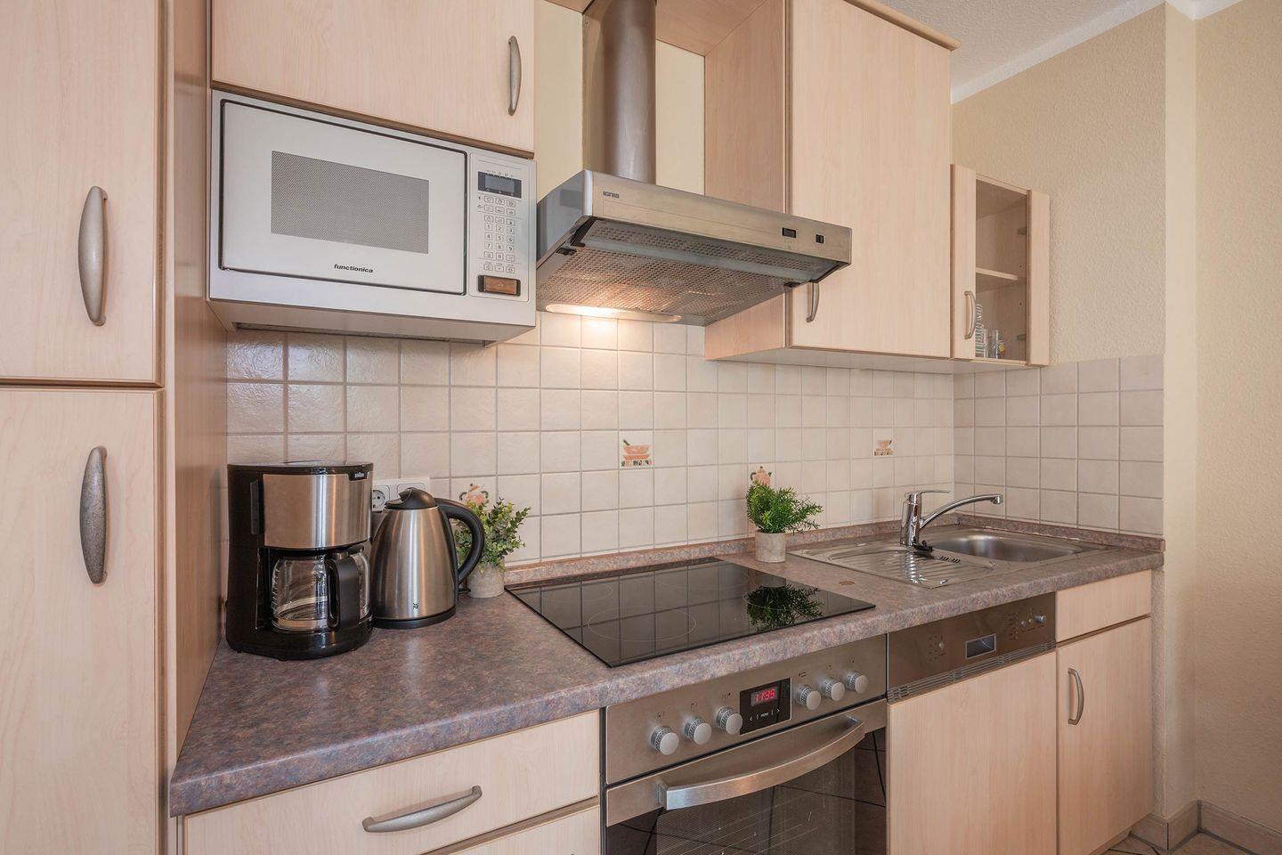 Die Wohnung 11 befindet sich im Erdgeschoss des Hauses. Wunderschön mit warmen wohnlichen Farben ist dieses Domizil für bis zu fünf Personen hergerichtet worden. Im Wohnzimmer befindet sich neben einem Schlafsofa auch ein Sessel, ein Fernseher und der Essbereich mit einem Esstisch. Von hier aus betreten Sie Ihre möblierte Terrasse zur Südseite. Genießen Sie hier Ihr üppiges Frühstück oder den Sonnenuntergang bei einem guten Glas Wein und entfliehen Sie so vollkommen Ihrem Alltagsstress. Die Küche befindet sich offen zum Wohnraum und ist mit allen wichtigen Küchenutensilien und Gerätschaften ausgestattet. Im ersten Schlafzimmer ist neben dem bequemen Doppelbett auch ein Kleiderschrank zu finden. Als zusätzliche Annehmlichkeit befindet sich auch hier ein Fernseher. Das zweite Schlafzimmer dient dank zweier Einzelbett hervorragend als Kinderzimmer. Auch hier befindet sich ein Kleiderschrank. Für die kleinen Besucher steht ein Babyreisebett mit Matratze jedoch ohne Wäscheausstattung zur Verfügung.