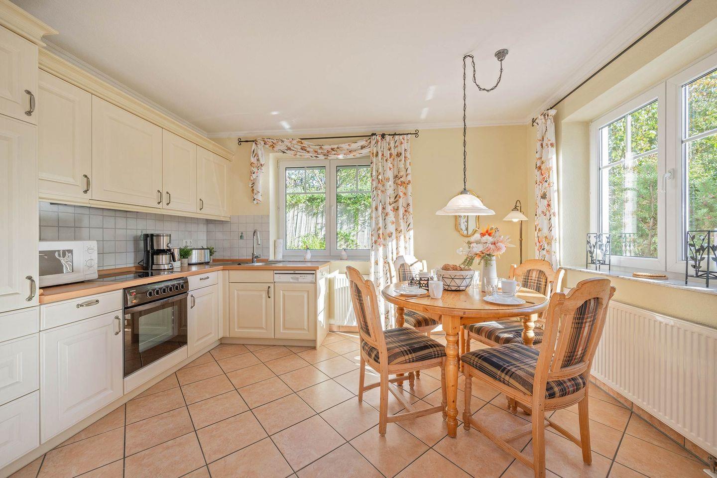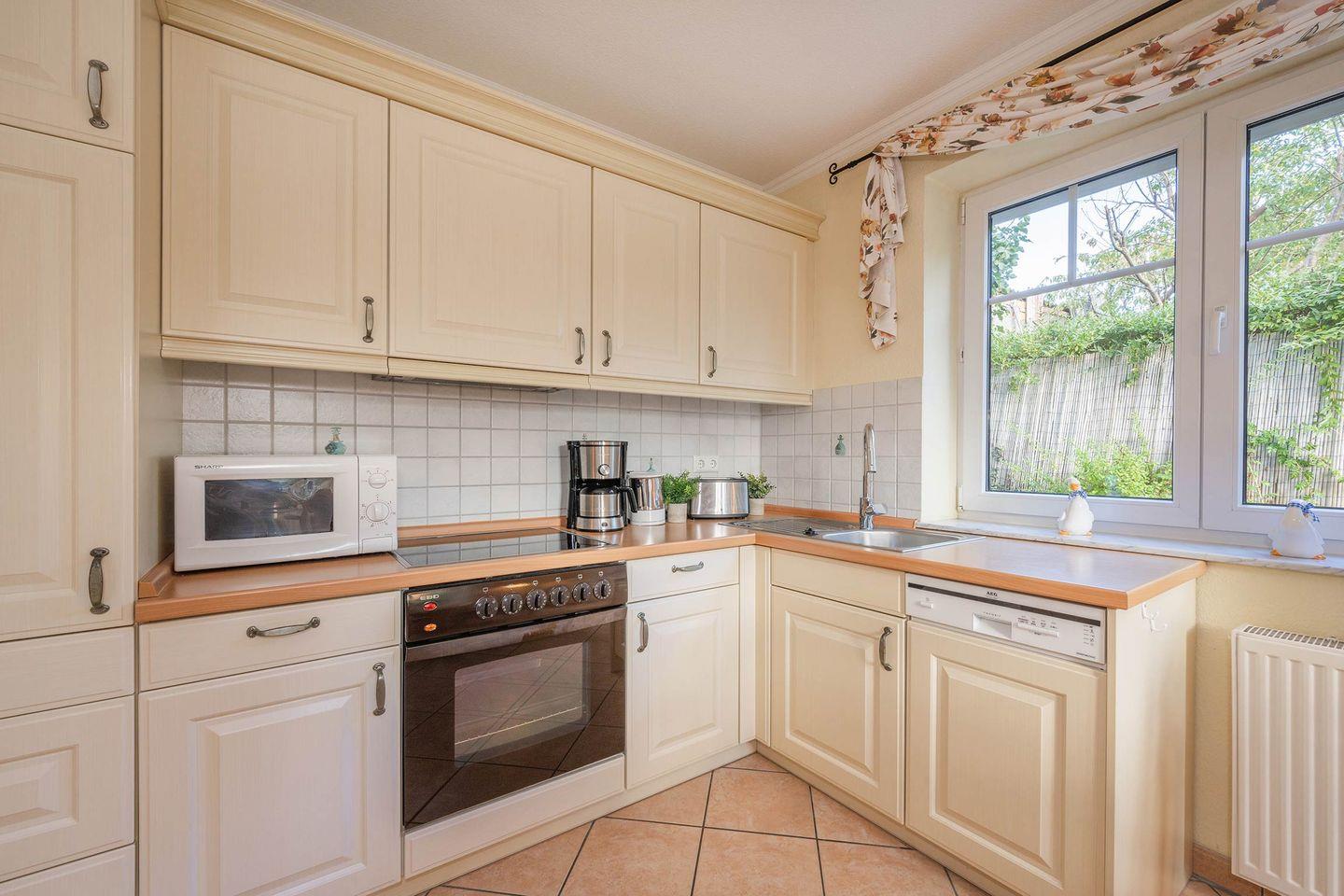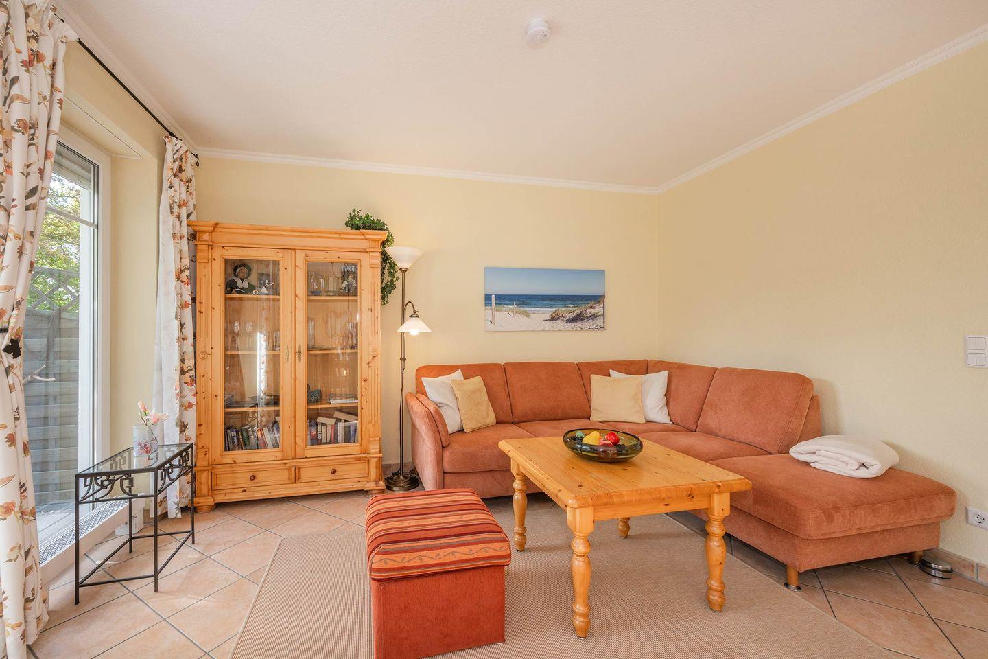 Dieses gemütliche Domizil im Erdgeschoss, überzeugt durch seine Lage und eine sehr ansprechende Ausstattung. Der Wohnbereich ist kombiniert und bietet Ihnen eine Schlafcouch, einen TV und einen Essbereich. Von hier aus betreten Sie Ihre möblierte Terrasse zur Südseite. Die Küchenzeile ist mit einem Backofen-/Cerankochfeld, Mikrowelle, Geschirrspülmaschine und Kaffeemaschine ausgestattet. Im Schlafzimmer befindet sich ein Doppelbett und ein Kleiderschrank.