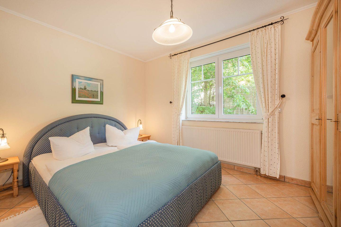 Diese gemütliche 2-Zimmer- Ferienwohnung im Erdgeschoss, überzeugt durch seine Lage und eine sehr ansprechende Ausstattung. Der Wohnbereich ist kombiniert und bietet Ihnen eine ausziehbare Schlafcouch, einen Flatscreen-TV und einen Essbereich für vier Personen. Von hier aus betreten Sie Ihre möblierte Terrasse zur Südseite. Auf der Terrasse befindet sich ein moderner Strandkorb. Genießen Sie hier Ihr üppiges Frühstück oder den Sonnenuntergang bei einem guten Glas Wein und entfliehen Sie so vollkommen Ihrem Alltagsstress. Die Küchenzeile ist mit einem Backofen-/Cerankochfeld, Mikrowelle, Geschirrspülmaschine und Kaffeemaschine ausgestattet. Im Schlafzimmer befindet sich ein Doppelbett und ein Kleiderschrank. Das moderne Badezimmer bietet Ihnen eine Dusche und ein WC.