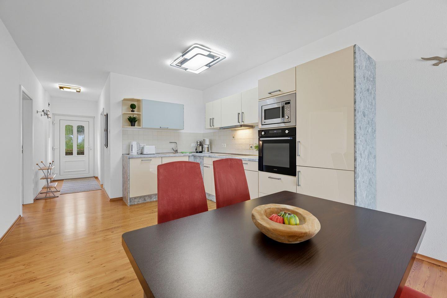 Die Villa Stranddistel, Whg. 3 in Zinnowitz bietet auf 63 m² Platz für bis zu 4 Personen. Zwei Schlafzimmer, eine offene Küche, bodengleiche Dusche, WLAN sowie ein Kaminofen sorgen für Komfort. Kinder und Babys sind willkommen, ein Parkplatz ist vorhanden. Die Ferienwohnung ist behindertengerecht und begeistert mit moderner Ausstattung.