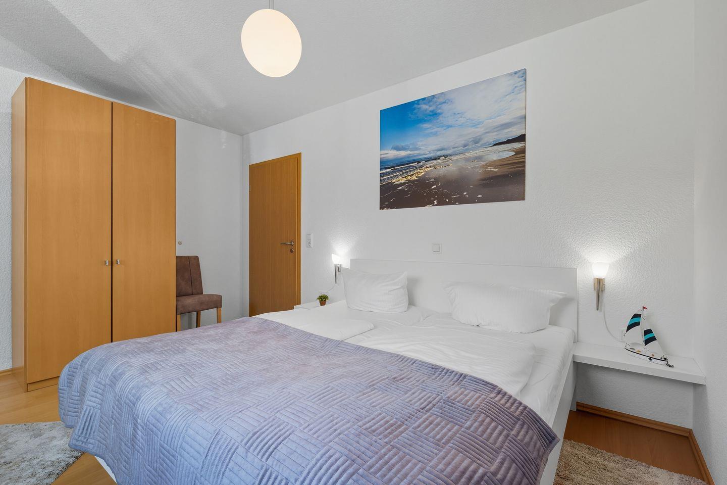 In der 1. Etage der Waldstraße 8g erwartet Sie dieses schöne Apartment, das mit zwei Schlafzimmern, jeweils ausgestattet mit Doppelbetten, ideal für einen entspannten Aufenthalt ist.
