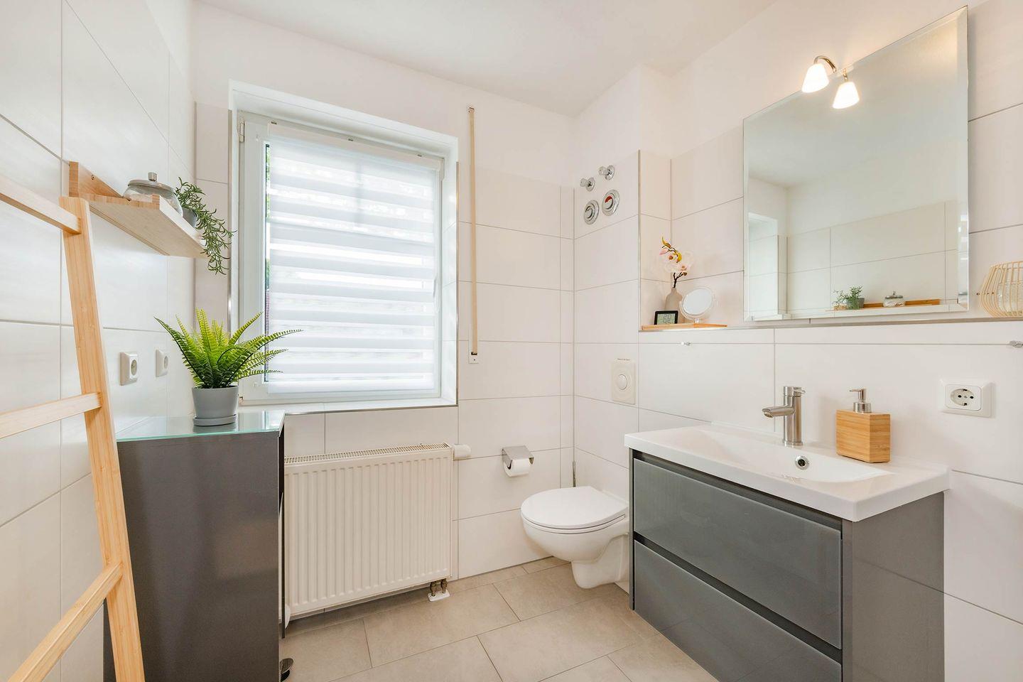Das Schlafzimmer ist mit einem großen Doppelbett (1,80 m x 2,00 m) und einem geräumigen Kleiderschrank ausgestattet. Verdunkelungsmöglichkeiten sorgen für erholsamen Schlaf und ungestörte Nächte. Das moderne Badezimmer überzeugt durch sein klares Design und ist mit einer Dusche mit niedrigem Einstieg, Waschbecken und WC ausgestattet.
