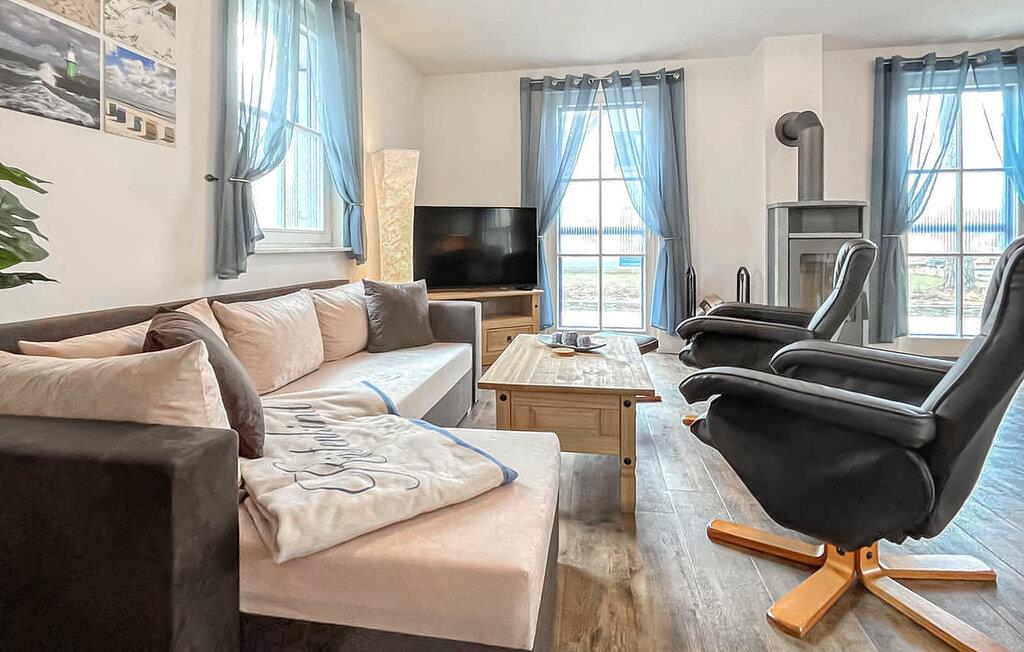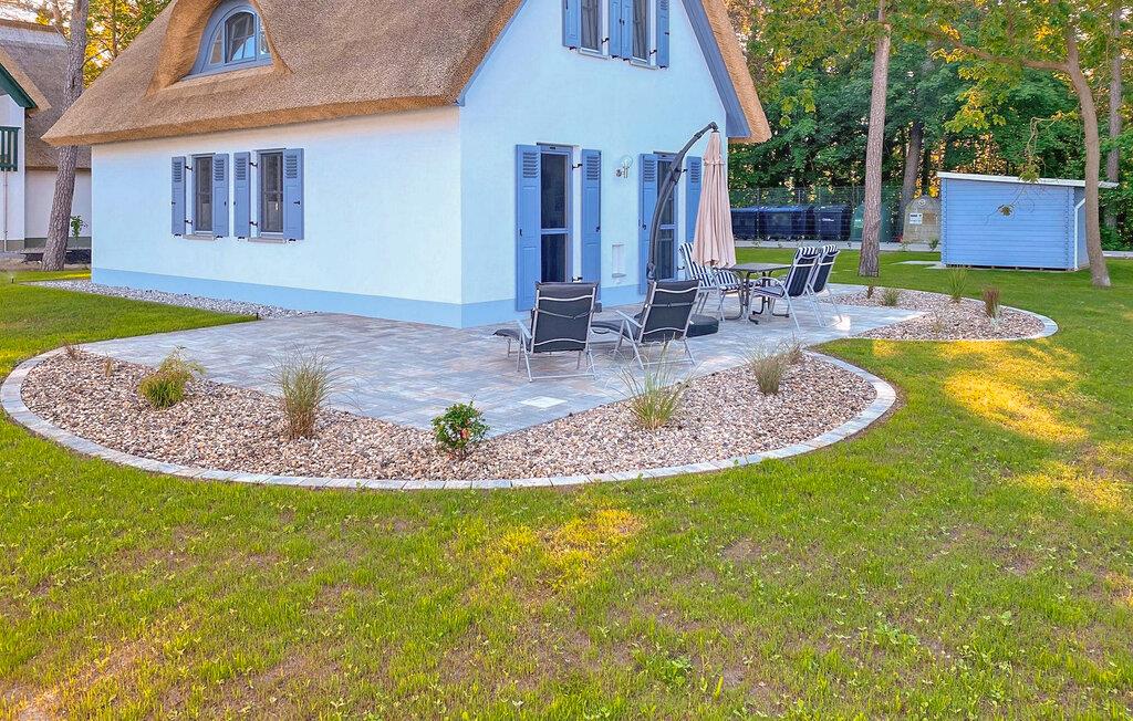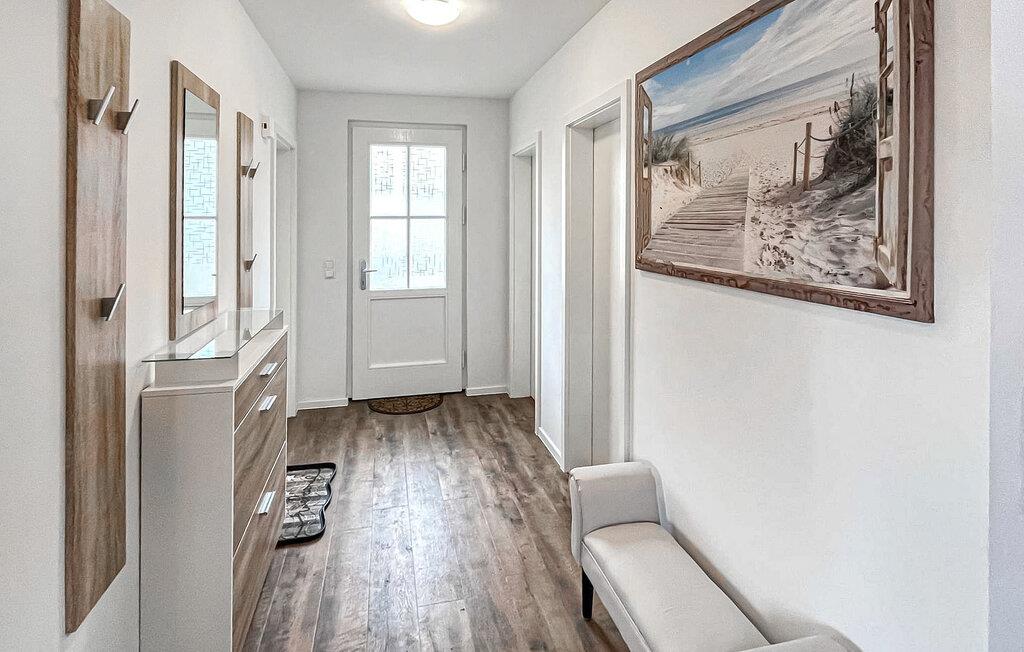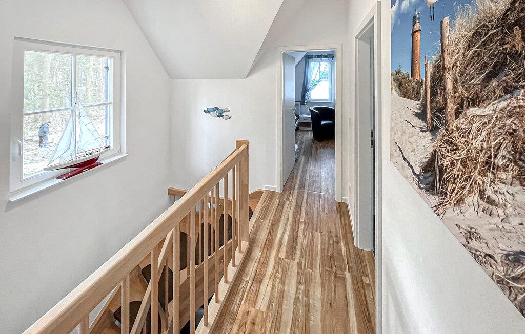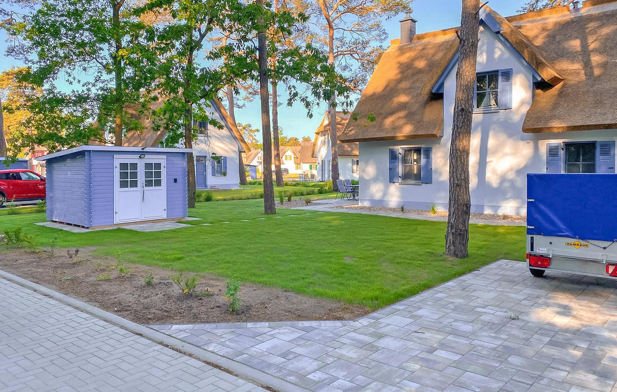 Det 100 m² store feriehus til max 4 personer + lille barn er beliggende på en 640 m² fritidsejendom i feriehusbebyggelsen ved Kieferwald i udkanten af Zirchow. Sommerhuset stod færdigt medio 2022 (første indflytning i juni 2022). Det strækker sig over to boligplaner og er udstyret til en høj standard. Der er stor stue/alrum i stueetagen (polstrede møbler, fladskærms-tv, radio-cd, spisebord, pejs) med åbent tekøkken (elkomfur med ovn, køleskab med fryser, opvaskemaskine, mikroovn, div. køkkenmaskiner). Saunarum med sauna og bruser samt gæstetoilet. På øverste etage er der to soveværelser (1 x dobbeltseng og 2 enkeltsenge) og et badeværelse med badekar og bruser. En barneseng og en høj stol er til rådighed for små børn. Internet (W-LAN) er også tilgængeligt. Udenfor er der en møbleret terrasse, grill, liggestole, opbevaringsplads til cykler og parkeringsplads. Den samlede pris inkluderer slutrengøring, sengelinned, håndklæder, indledende levering af brænde samt vand- og elforbrug. Kæledyr er ikke tilladt i denne ejendom. Zirchow er en lille by i Achterland på øen Usedom nær grænsen til Polen. Zirchow ligger direkte ved Szczecin-lagunen med mange muligheder for svømning og vandsport. Kun få kilometer væk ligger badebyen Heringsdorf (ca. 10 km) eller badebyen Ahlbeck (ca. 8 km). I Zirchow er der en lille butik med dagligvarer og friske rundstykker. Derudover ligger Heringsdorf lufthavn kun ca. 0,5 km væk (små flyveoperationer). En restaurant ligger omkring 0,3 km væk. Der er ca. 8 km til Østersøstranden (badebyen Ahlbeck).
