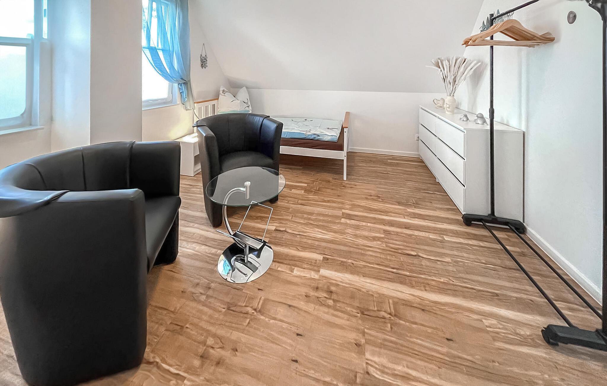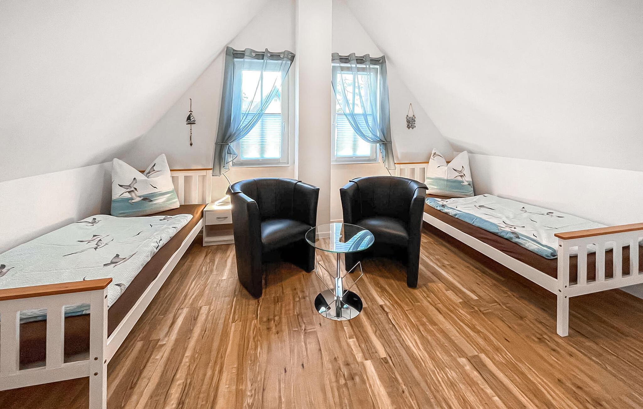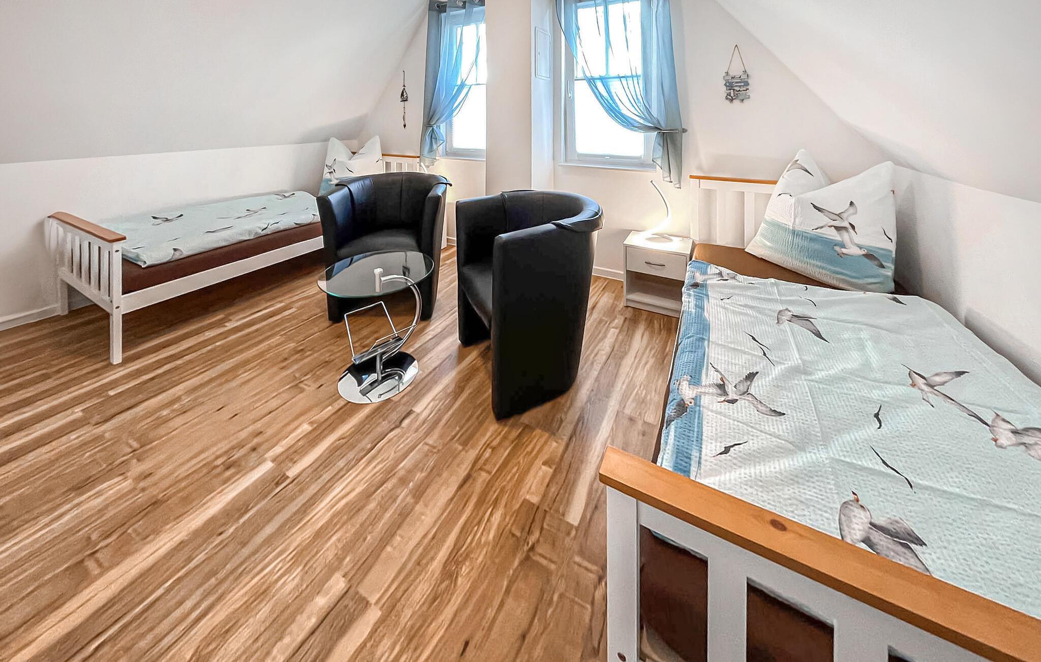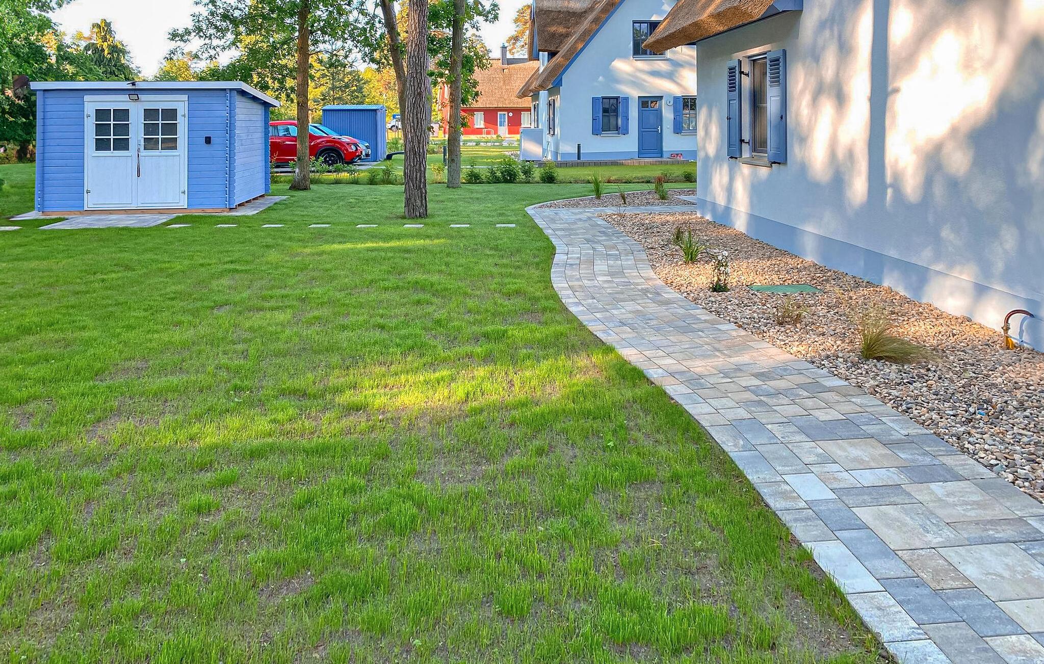 Det 100 m² store feriehus til max 4 personer + lille barn er beliggende på en 640 m² fritidsejendom i feriehusbebyggelsen ved Kieferwald i udkanten af Zirchow. Sommerhuset stod færdigt medio 2022 (første indflytning i juni 2022). Det strækker sig over to boligplaner og er udstyret til en høj standard. Der er stor stue/alrum i stueetagen (polstrede møbler, fladskærms-tv, radio-cd, spisebord, pejs) med åbent tekøkken (elkomfur med ovn, køleskab med fryser, opvaskemaskine, mikroovn, div. køkkenmaskiner). Saunarum med sauna og bruser samt gæstetoilet. På øverste etage er der to soveværelser (1 x dobbeltseng og 2 enkeltsenge) og et badeværelse med badekar og bruser. En barneseng og en høj stol er til rådighed for små børn. Internet (W-LAN) er også tilgængeligt. Udenfor er der en møbleret terrasse, grill, liggestole, opbevaringsplads til cykler og parkeringsplads. Den samlede pris inkluderer slutrengøring, sengelinned, håndklæder, indledende levering af brænde samt vand- og elforbrug. Kæledyr er ikke tilladt i denne ejendom. Zirchow er en lille by i Achterland på øen Usedom nær grænsen til Polen. Zirchow ligger direkte ved Szczecin-lagunen med mange muligheder for svømning og vandsport. Kun få kilometer væk ligger badebyen Heringsdorf (ca. 10 km) eller badebyen Ahlbeck (ca. 8 km). I Zirchow er der en lille butik med dagligvarer og friske rundstykker. Derudover ligger Heringsdorf lufthavn kun ca. 0,5 km væk (små flyveoperationer). En restaurant ligger omkring 0,3 km væk. Der er ca. 8 km til Østersøstranden (badebyen Ahlbeck).