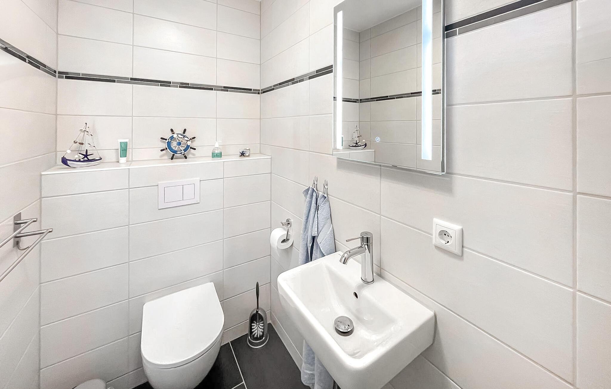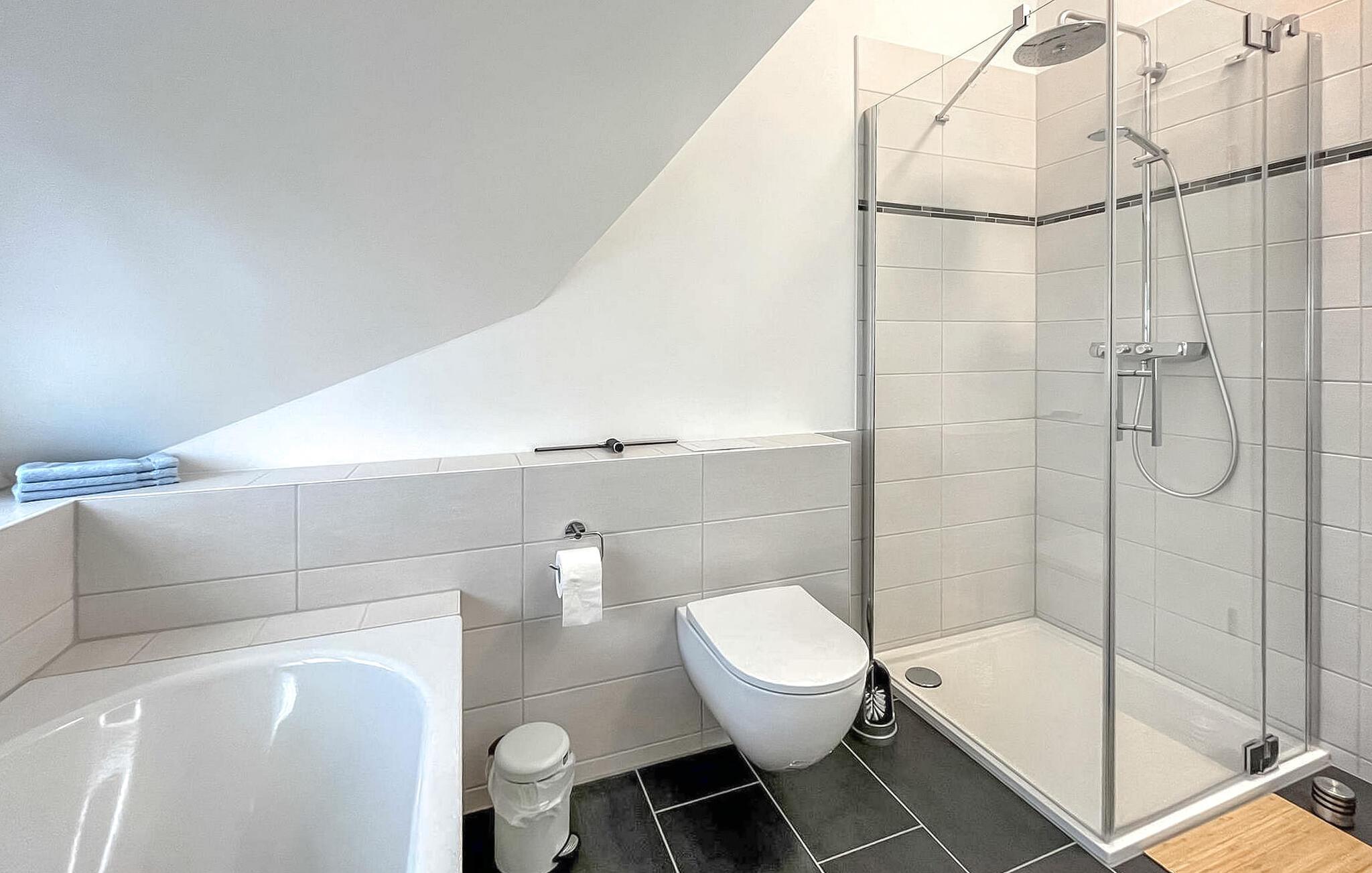 Badeværelse (nr. 1) - WC. Varmt og koldt vand. Bruser og badekar