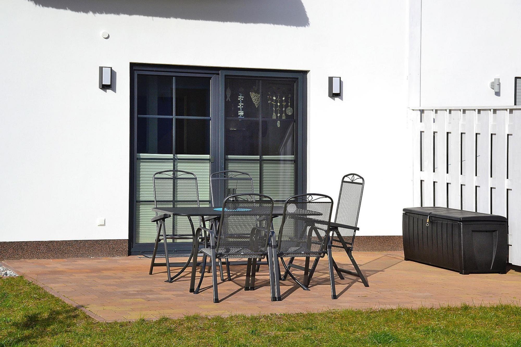 Stueetage: (åbent køkken(spisebord(5 personer), elkedel, brødrister, komfur(Komfur med fire kogeplader, glaskeramisk), emhætte, kaffemaskine, ovn, opvaskemaskine , køle-fryseskab), stue / spisestue(Fjernsyn(parabol), pejs, radio, varme(gulvvarme)), badeværelse(bruser, håndvask, toilet)) På 1. etage: (soveværelse(dobbeltseng), soveværelse(enkeltseng, enkeltseng), badeværelse(bruser, håndvask, toilet, føntørrer)) sofahjørne, grill, vaskemaskine, terrasse, cykelopbevaring, havemøbler, solstole, parkering, parking lot(public), Parasol, barnestol, baby crib(free), Vaskeripakke mod et gebyr