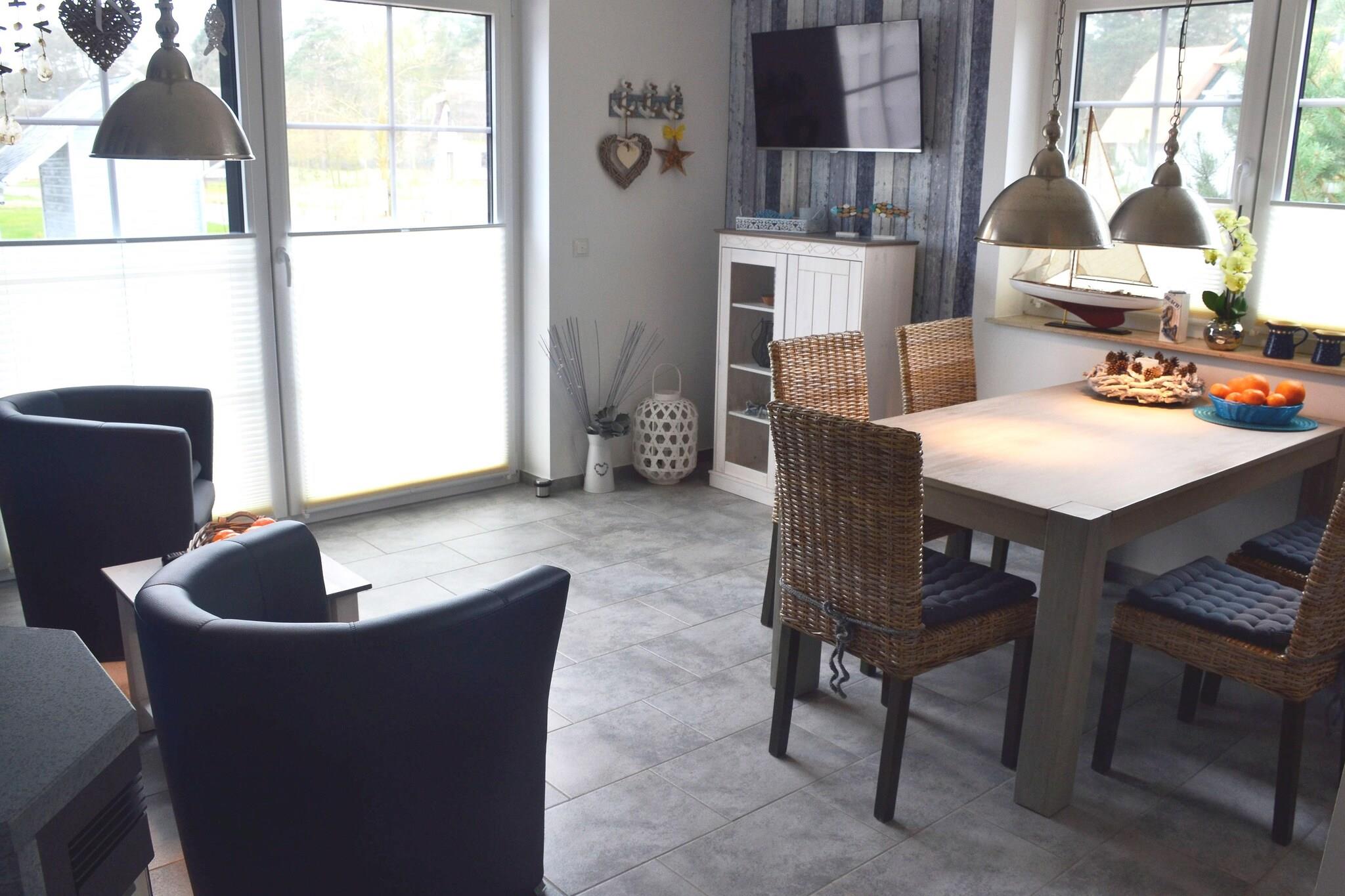 Et vidunderligt tilflugtssted til årets smukkeste dage: Smagfuldt og højkvalitets møbleret stråtagshus med pejs. Husets værelser i landlig stil lover dig afslappende og afslappende dage på den sydøstlige del af øen. Den rummelige terrasse er perfekt til at slappe af udenfor med lidt ferielæsning eller til en hyggelig grillaften. Det lille samfund Zirchow ligger i det såkaldte Hinterland of Usedom, som er højt værdsat af dem, der søger ro på grund af sine klare søer, grønne skove og mange farverige enge. Nærheden til de kejserlige bade i Ahlbeck, Heringsdorf og Bansin med deres smukke Østersøstrande er lige så tiltalende - disse kan nås herfra på få minutter. Aktiviteter i nærheden: Minimarked (650 m) med levering af brød (mod betaling). Usedoms bagland byder på en overflod af aktiviteter tæt på naturen: det ideelle udgangspunkt for afslappende gåture og lange cykelture til de drømmende ølandsbyer, de maleriske havne og de mange små bugter ved lagunen Szczecin og Achterwasser. Nyd det store landskab med dens fyrreskove og de mange små søer, der indbyder til en sejltur Ikke egnet til personer med nedsat mobilitet