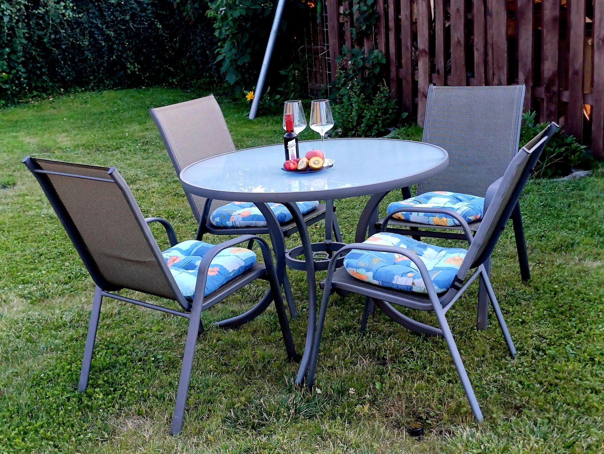 Auf dem Grundstück steht ein PKW-Stellplatz zur Verfügung. Eine Sitzecke im Garten mit Sonnenschirm (Grillmöglichkeit auf Wunsch) kann gerne genutzt werden.