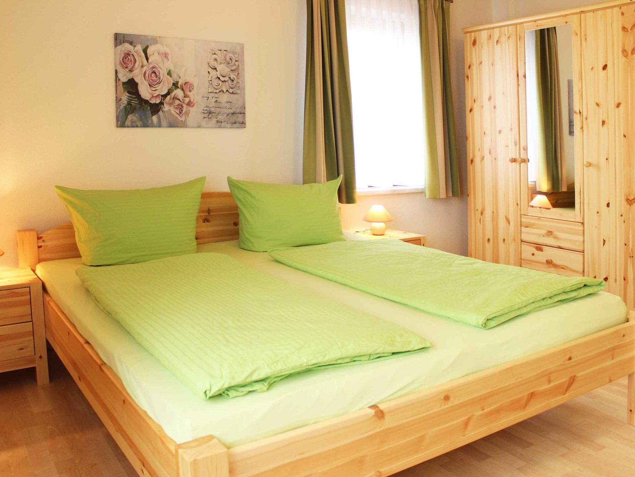 Die 45 qm große und moderne Ferienwohnung im Erdgeschoss ist für 2 Erwachsene und 2 Kinder bis max. 14 Jahren geeignet. Sie verfügt über ein geräumiges Wohnzimmer mit Couch (ausziehbar als Aufbettungmöglichkeit) und Flat-TV sowie ein Schlafzimmer mit Doppelbett. Das Bad ist mit Dusche/WC und Haartrockner ausgestattet.