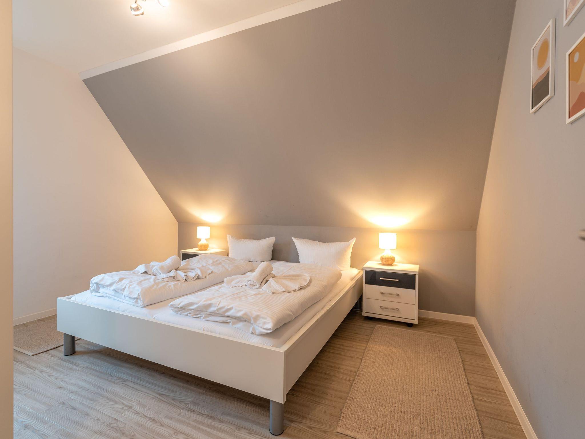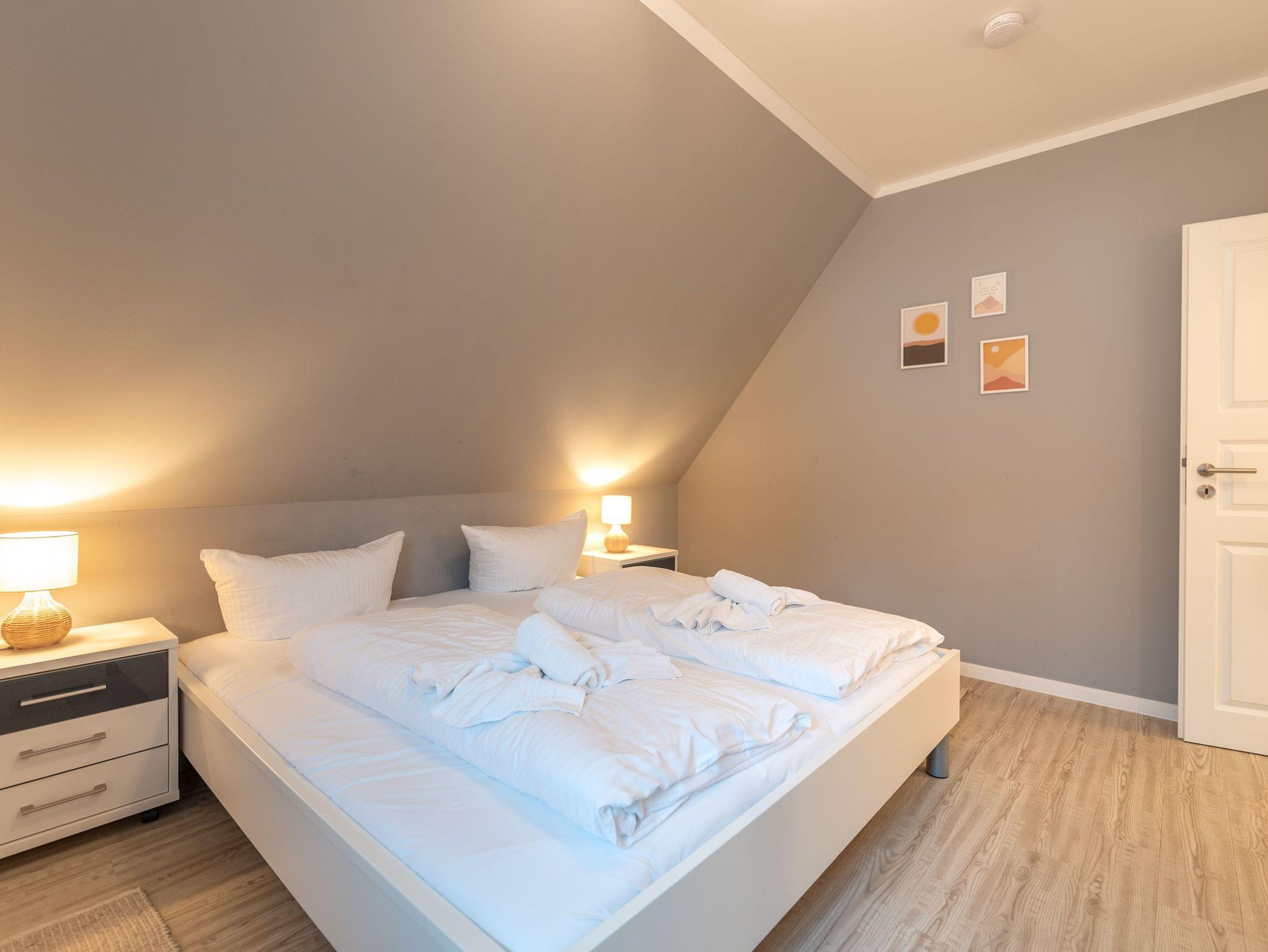 Das Obergeschoss beherbergt zwei liebevoll eingerichtete Schlafzimmer: eines mit einem komfortablen Doppelbett, das andere mit zwei Einzelbetten ? ideal für Kinder oder Mitreisende. Ergänzt wird die Etage durch ein weiteres Badezimmer mit Dusche, WC und Waschmaschine.