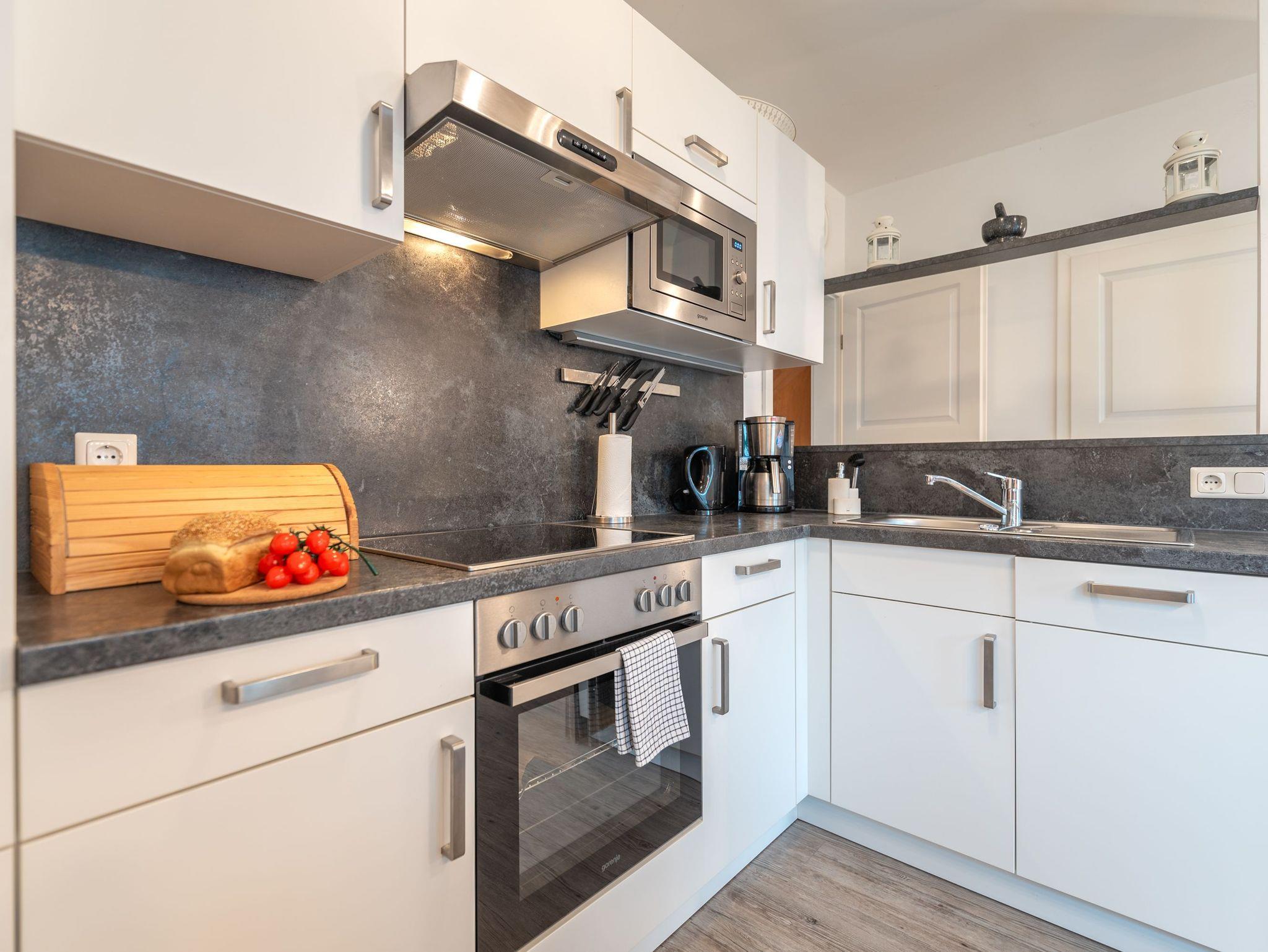 Im Erdgeschoss erwartet Sie ein einladender Wohnbereich mit gemütlicher Couch, Sessel, Smart-TV und einem wärmenden Kamin für behagliche Abende. Der angrenzende Essbereich mit offener Küche bildet das Herzstück des Hauses und lädt zu gemeinsamen Mahlzeiten ein. Ein besonderes Highlight ist das Badezimmer mit Dusche, WC und Sauna, das pure Entspannung verspricht.
