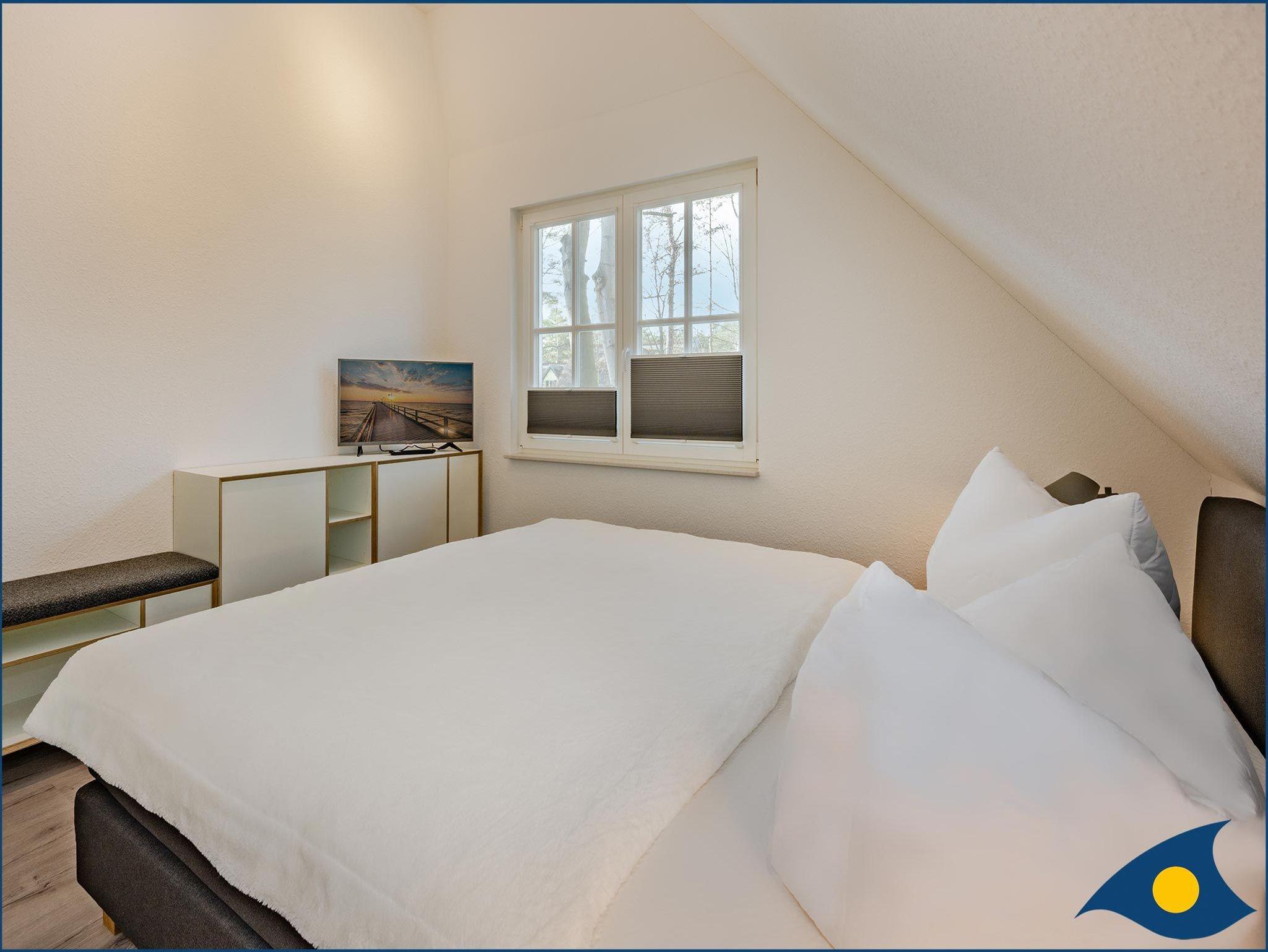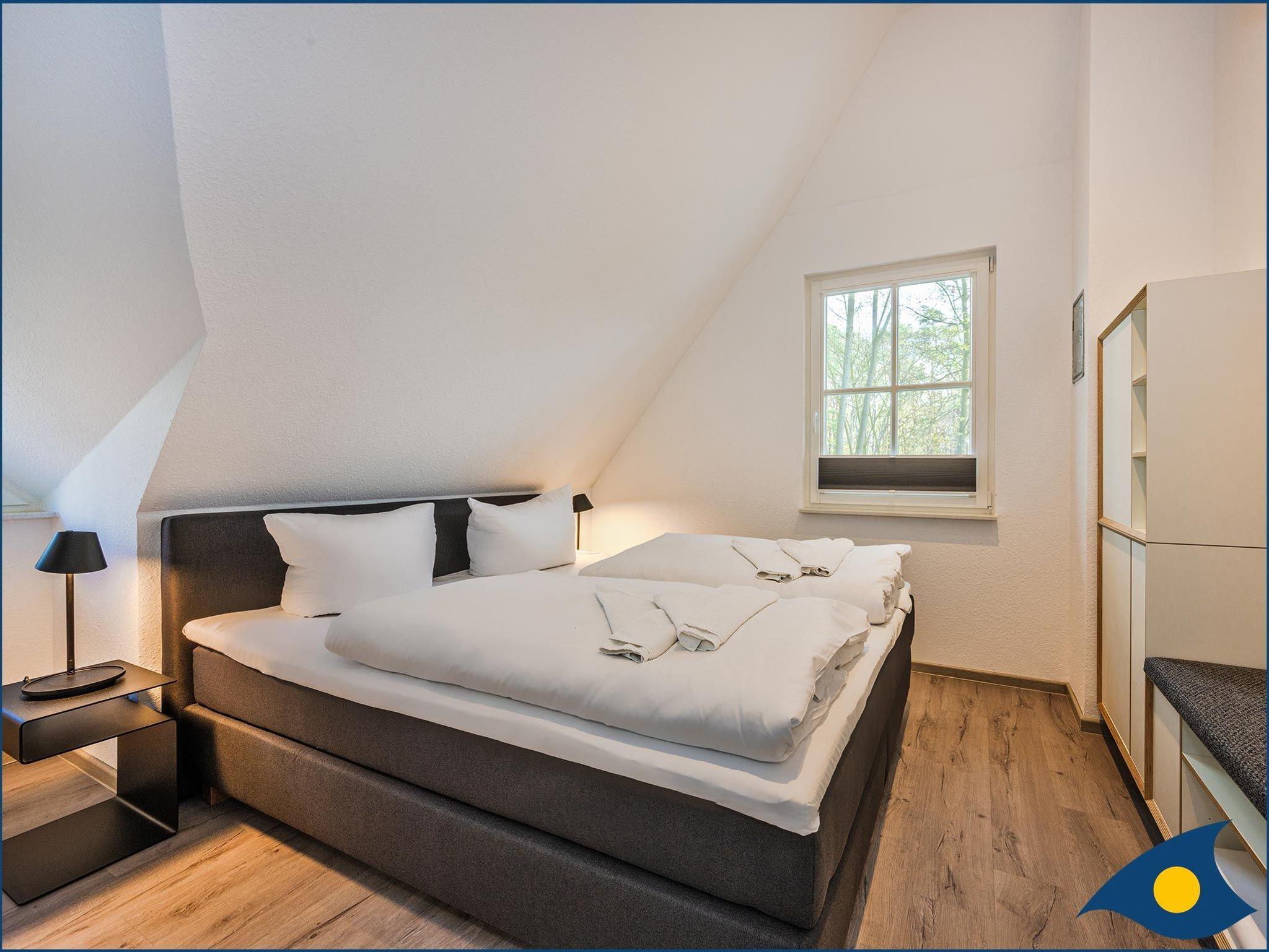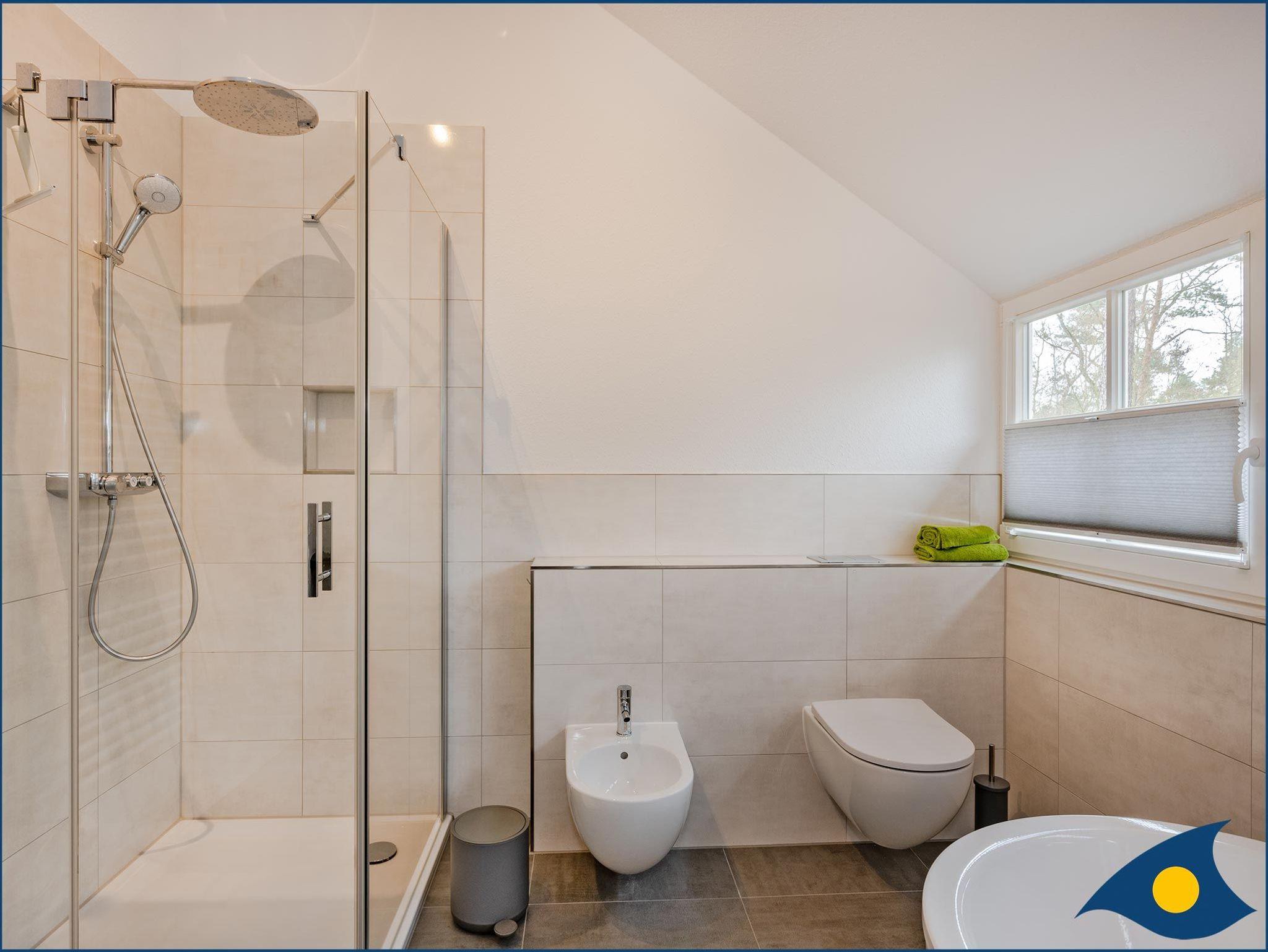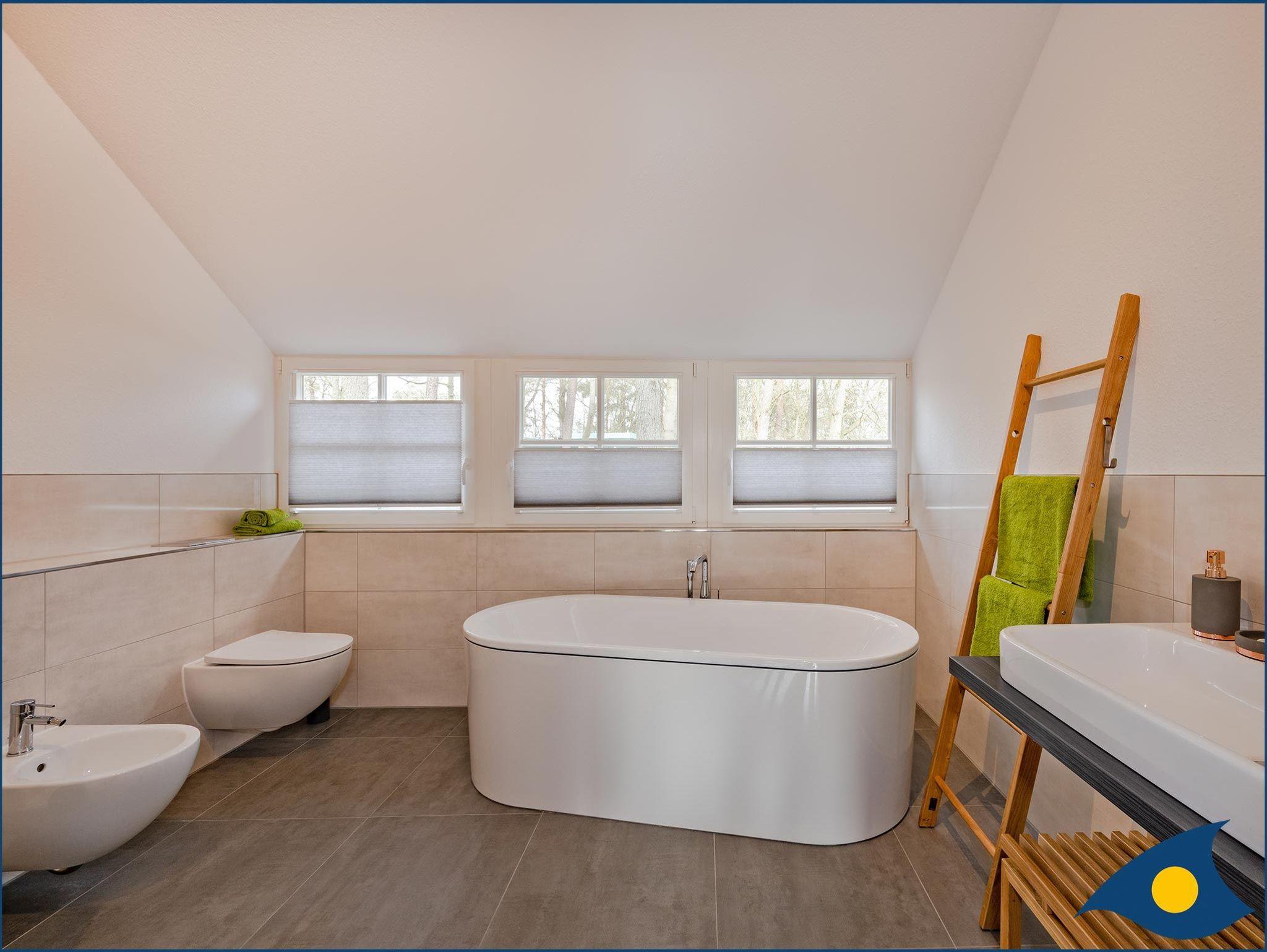 Im Obergeschoss befinden sich vier Schlafzimmer mit ausreichend Strauraum für Ihre privaten Sachen. Dabei sind zwei Schlafzimmer mit je einem Doppelbett, ein Schlafzimmer mit einer hochwertigen Schlafcouch (1,60x2,00m) und ein Schlafzimmer mit zwei Einzelbetten und einem Schreibtisch ausgestattet. Im großzügigen Badezimmer finden Sie eine Badewanne, eine ebenerdige Dusch und ein Bidet.