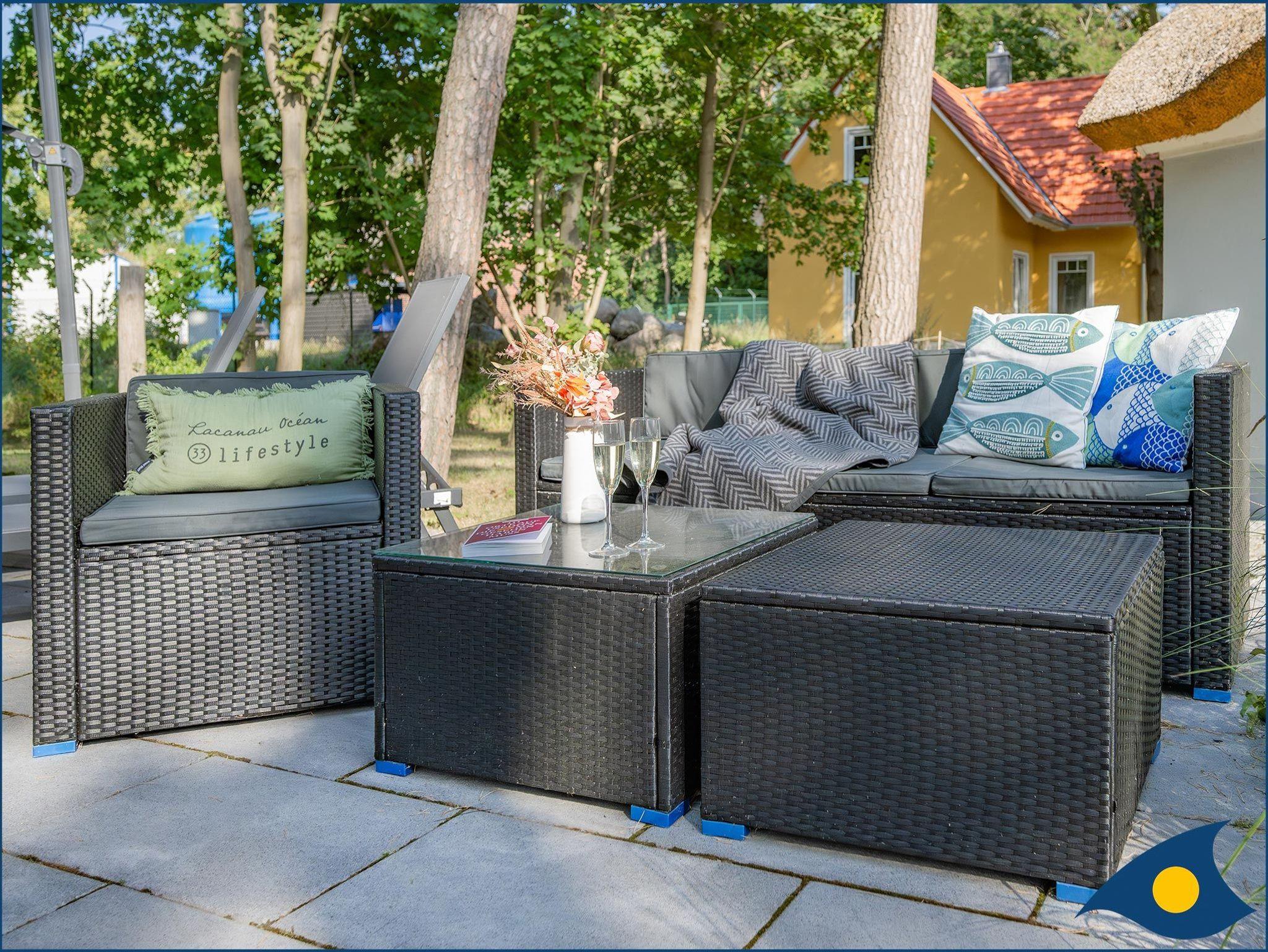 Auf der schön angelegten Terrasse mit Gartenmöbeln und Gartenliegen können Sie den Urlaubstag in vollen Zügen genießen.