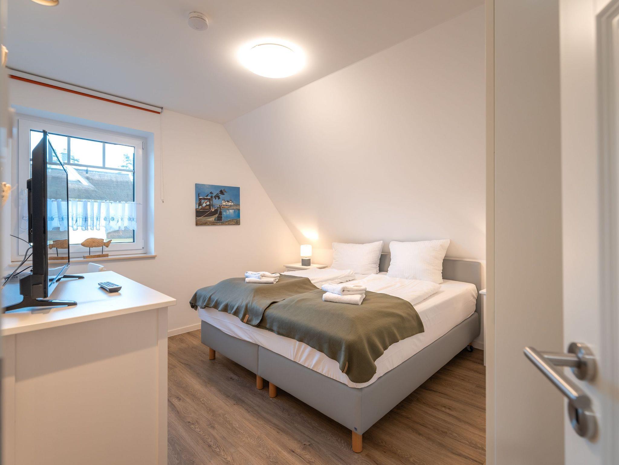 Das Ferienhaus Ankerplatz befindet sich im idyllischen Fischerdorf Zirchow und bietet auf einer Fläche von ca. 68 m² Platz für 4 Personen und ein Kleinkind. Die Doppelhaushälfte verfügt über einen offenen Wohnbereich mit Zugang zur Terrasse, 2 gemütliche Schlafzimmer und 2 moderne Badezimmer - eins davon mit Sauna. Ein ausgebauter Dachboden kann beispielsweise als Spielzimmer für Kinder genutzt werden.