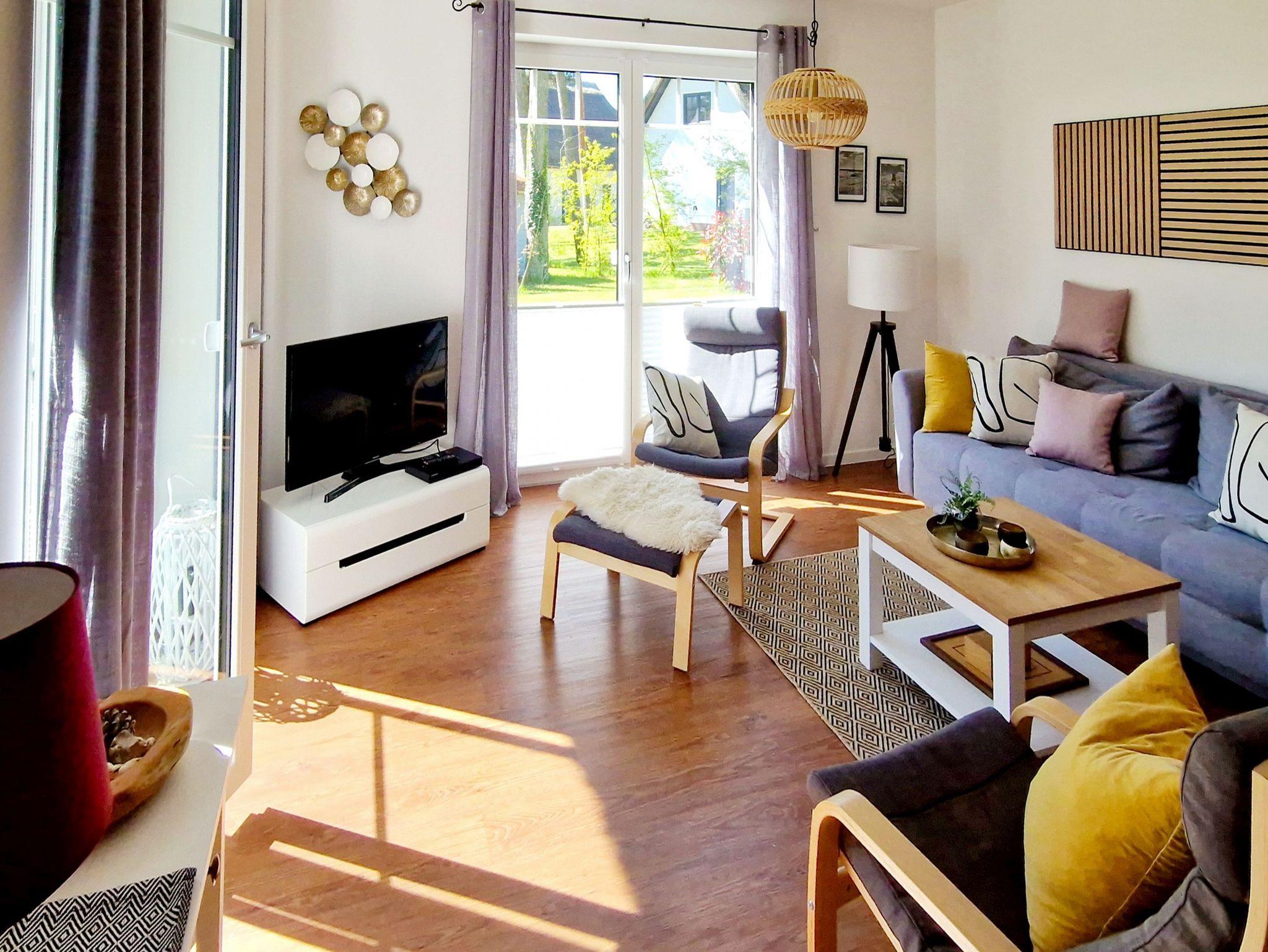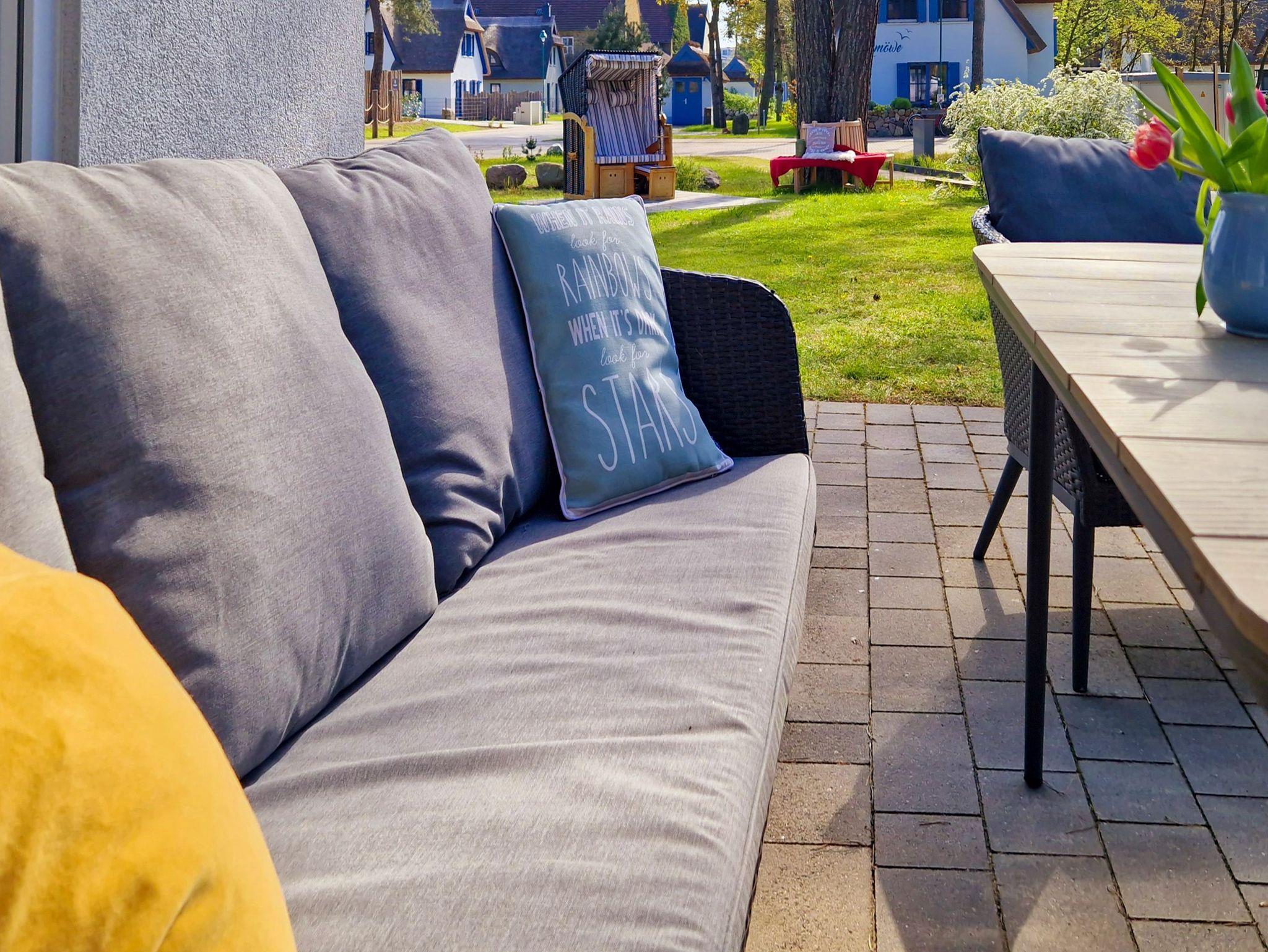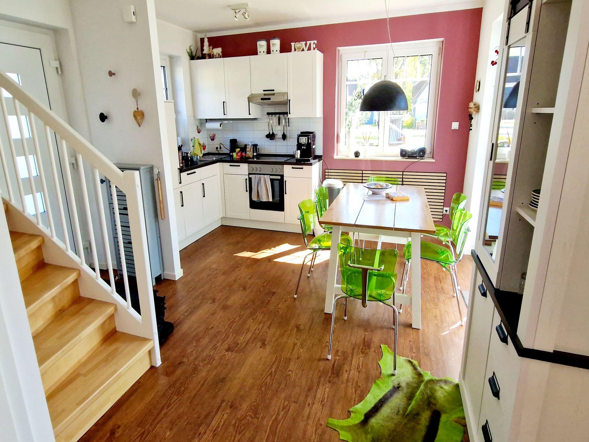 Im Erdgeschoss erwartet Sie ein offener Wohn- und Essbereich mit einem Esstisch und einer voll ausgestatteten Küchenzeile, die zum Verweilen einlädt. Von hier aus gelangen Sie direkt auf die Sonnenterrasse, wo Sie die Sonne Usedoms genießen können.